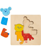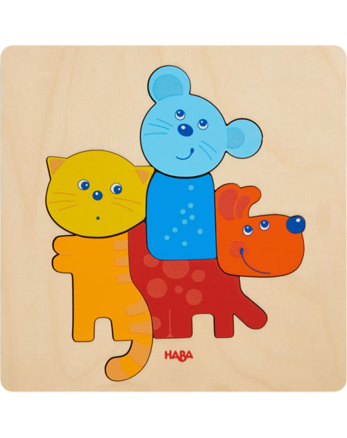 Hund, Katze, Maus: Kinder lieben Tiere und Haustiere können ganz besondere Freunde sein! Mit diesem Holzpuzzle können sie Hund, Katze und Maus Stück für Stück zusammensetzen. Das macht alleine oder gemeinsam viel Spaß und schult die Feinmotorik.
