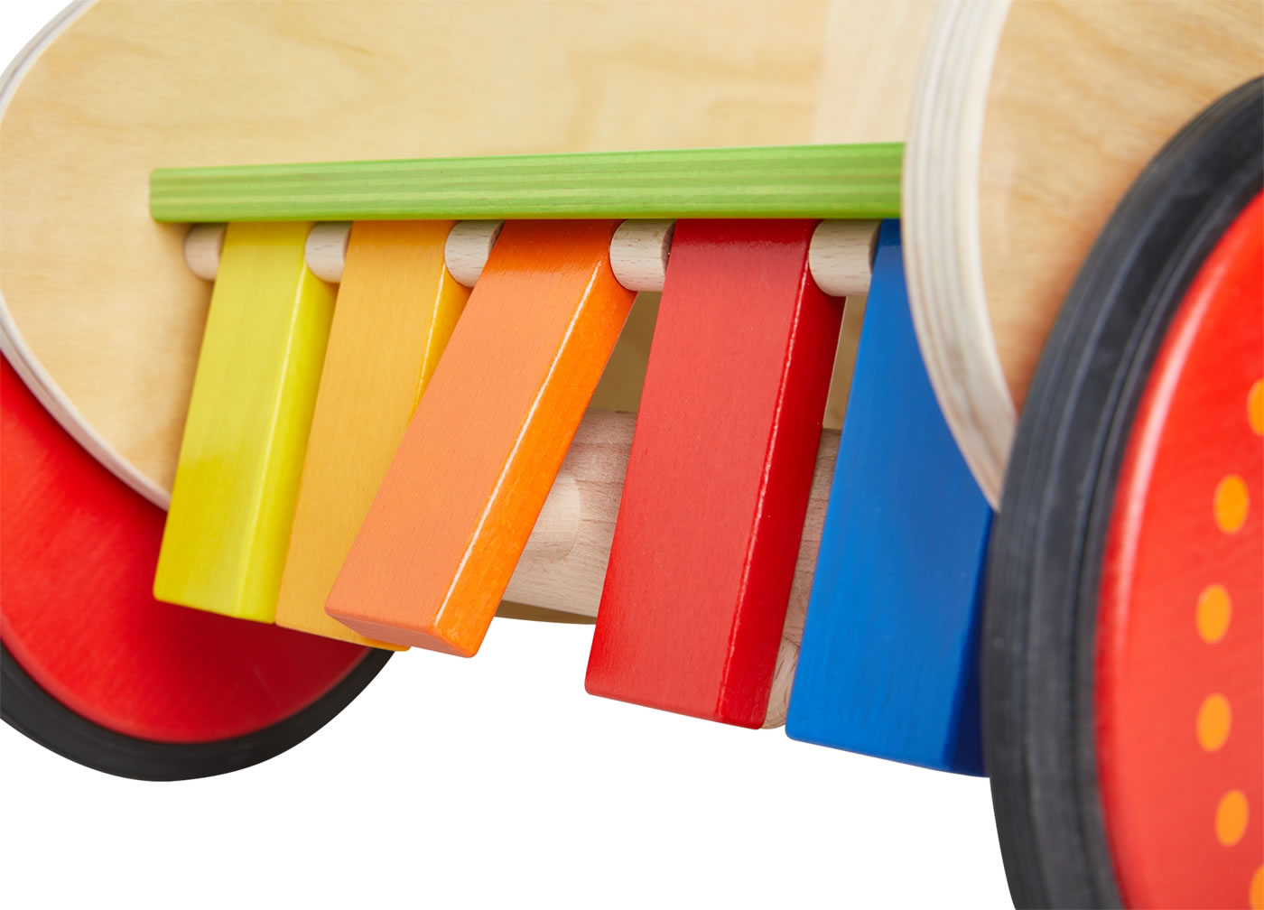 Material: Birkensperrholz, Buche, Räder mit Lauffläche aus Kunststoff