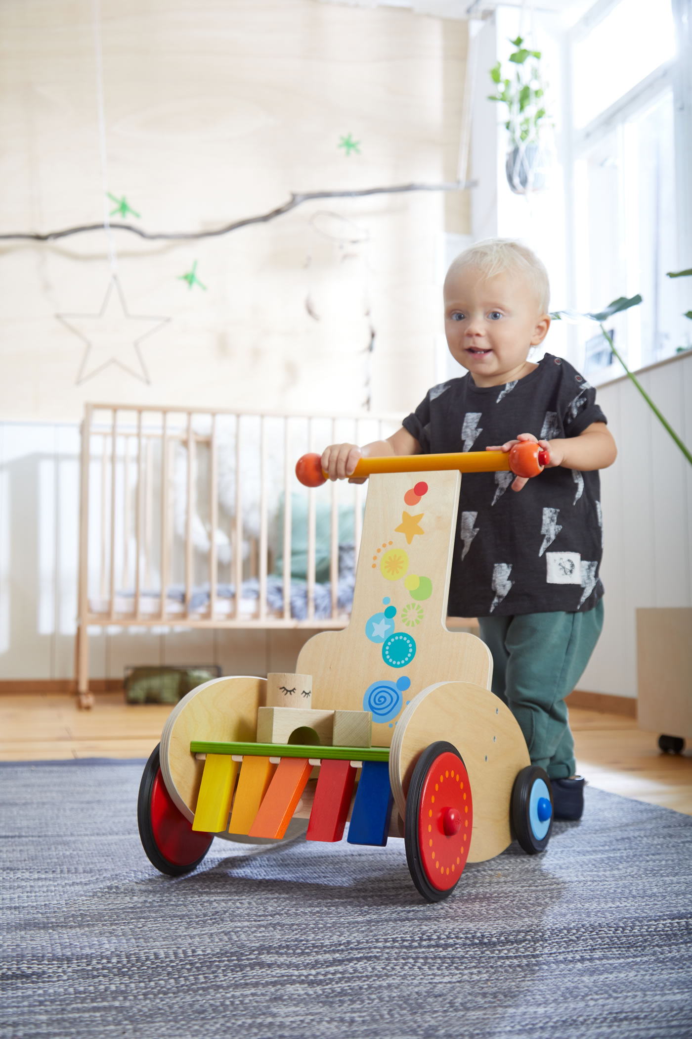 Dieser Lauflernwagen begleitet die Kleinsten auf ihren ersten Schritten durchs Leben. Dank der individuell justierbaren Bremse kann der Schiebewiderstand an das Tempo der Kleinen angepasst werden, sodass sie sicher unterwegs sind. Außerdem begeistert er kleine Laufanfänger mit spannenden akustischen Effekten.