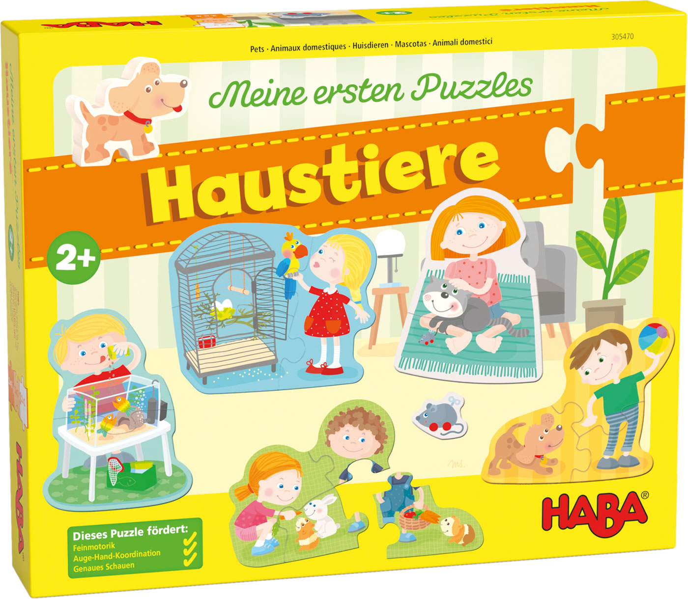 Meine ersten Puzzles – Haustiere von HABA enthalten 5 tierische Motive mit 2, 3 und 4 Puzzleteilen