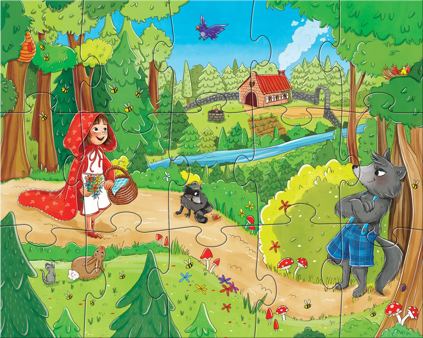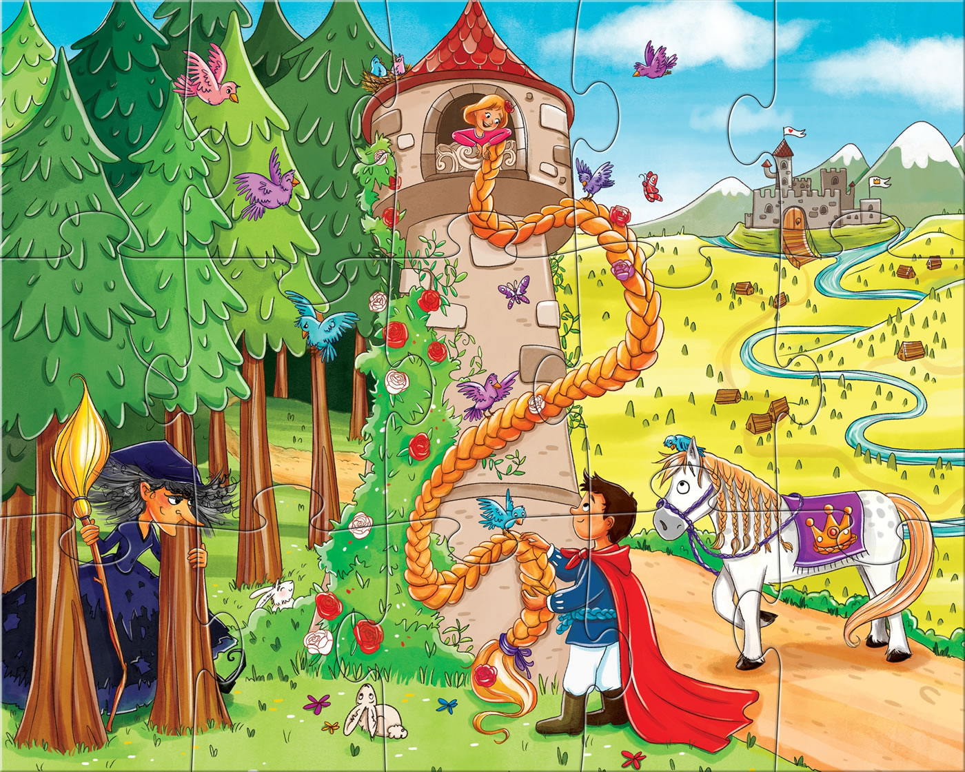 vier märchenhafte Motive für Puzzlespaß ab 3 Jahren