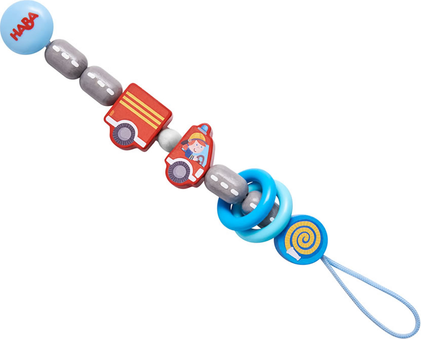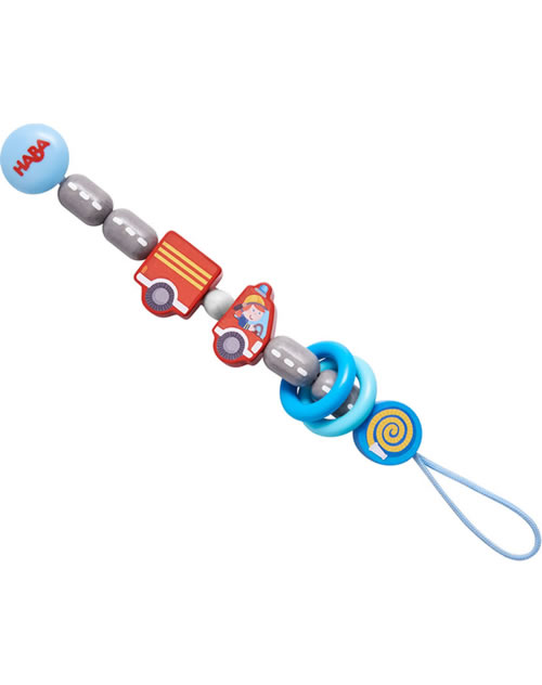 Mit der Schnullerkette Feuerwehrauto ist der Schnuller immer schnell griffbereit, wenn er gebraucht wird. Und der praktische Clip hält den Schnuller immer dort, wo er hingehört.
