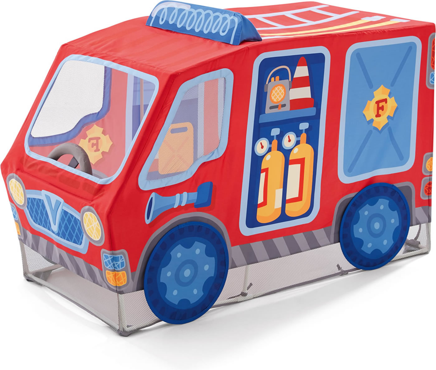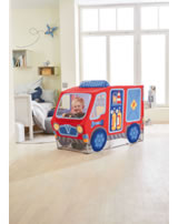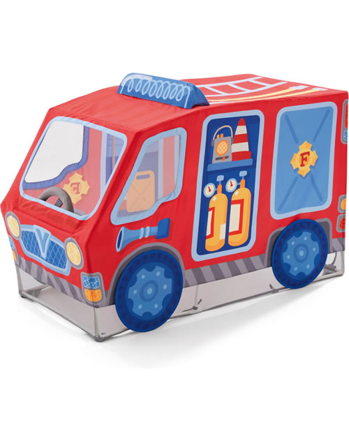 Tatütata, die Feuerwehr ist da! Mit diesem tollen Spielzelt können kleine Feuerwehrleute Tag für Tag zu ihren spannenden Einsätzen im Kinderzimmer ausrücken. Ein besonders raffinierter Spieleffekt ist das drehbare Lenkrad. Wird zerlegt geliefert. Ohne Bodenmatte.