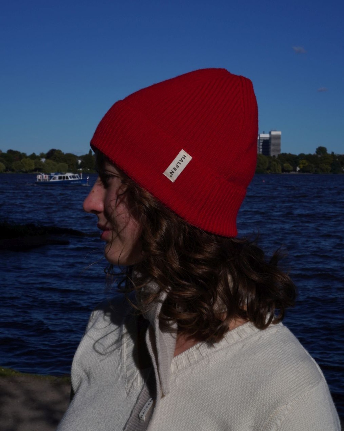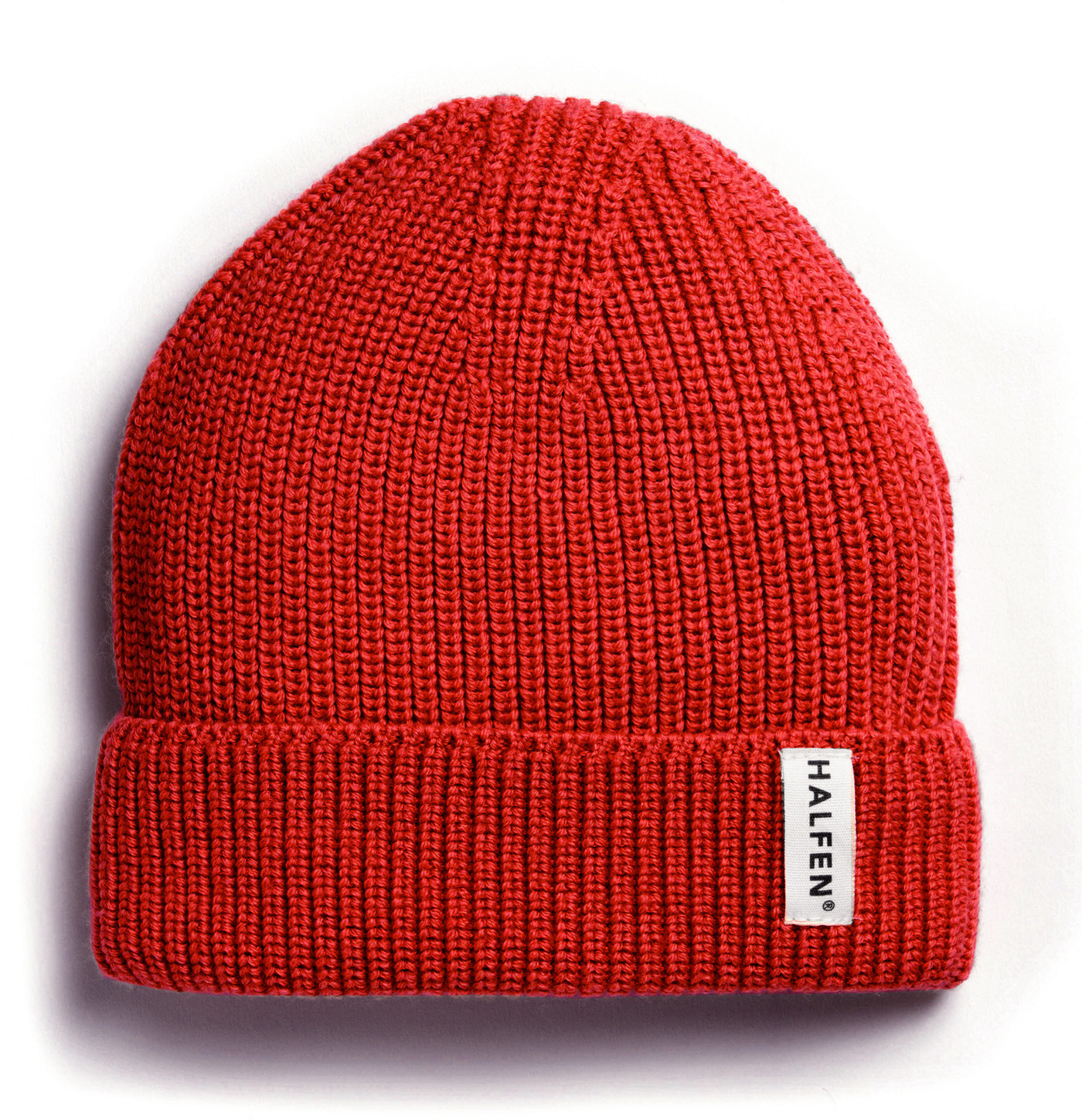 Halfen Strickerei Damen-Mütze aus 100% Merinowolle - Rot