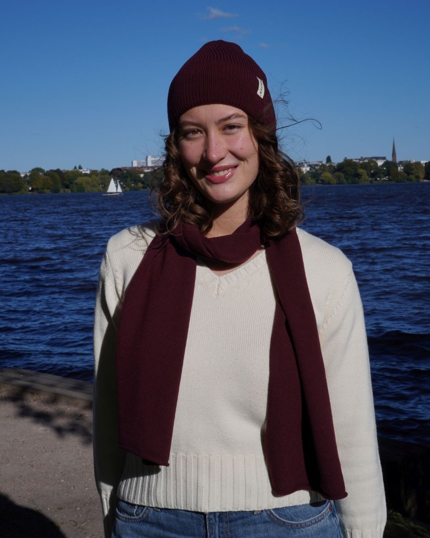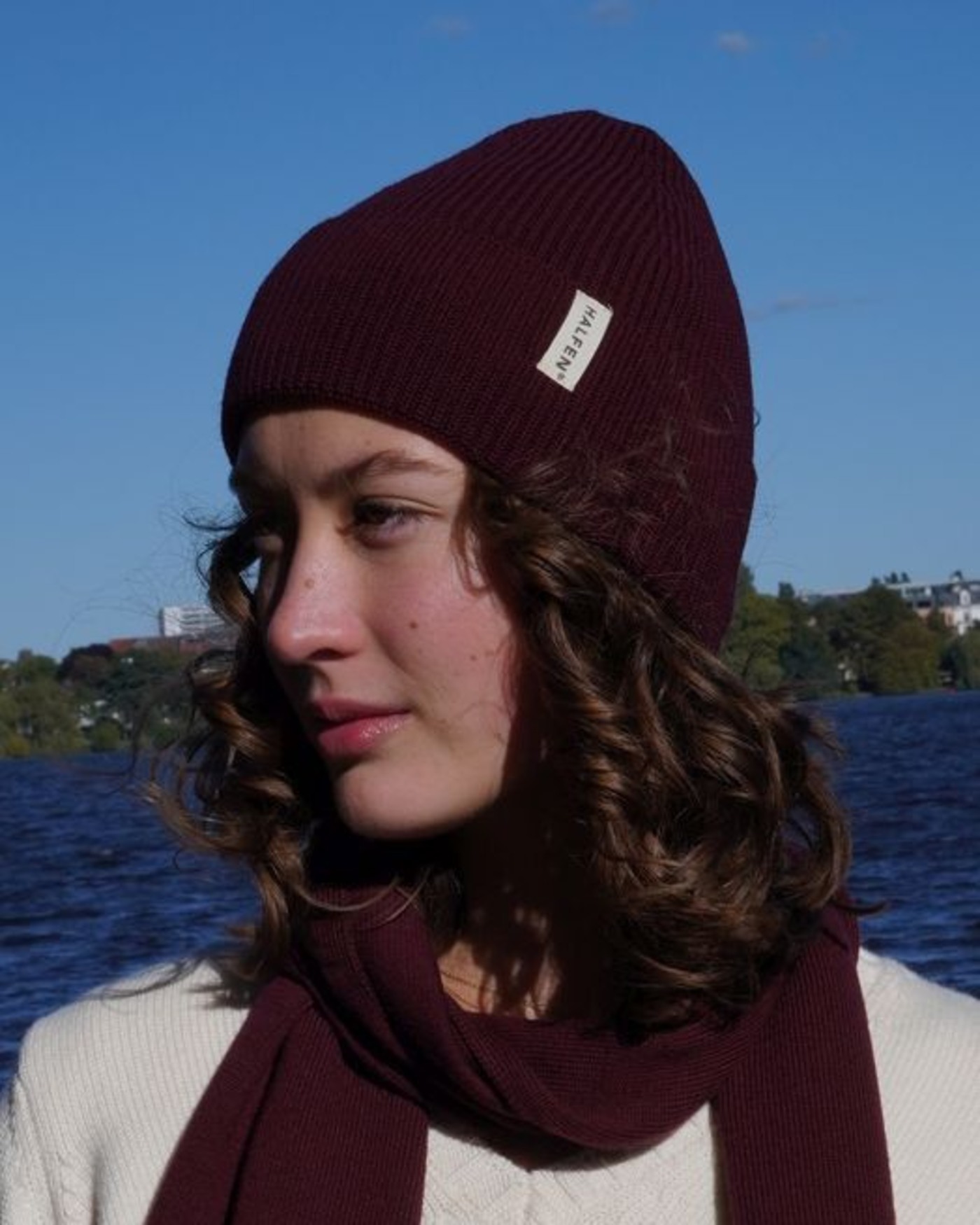Halfen Strickerei Damen-Mütze aus 100% Merinowolle - Cherry