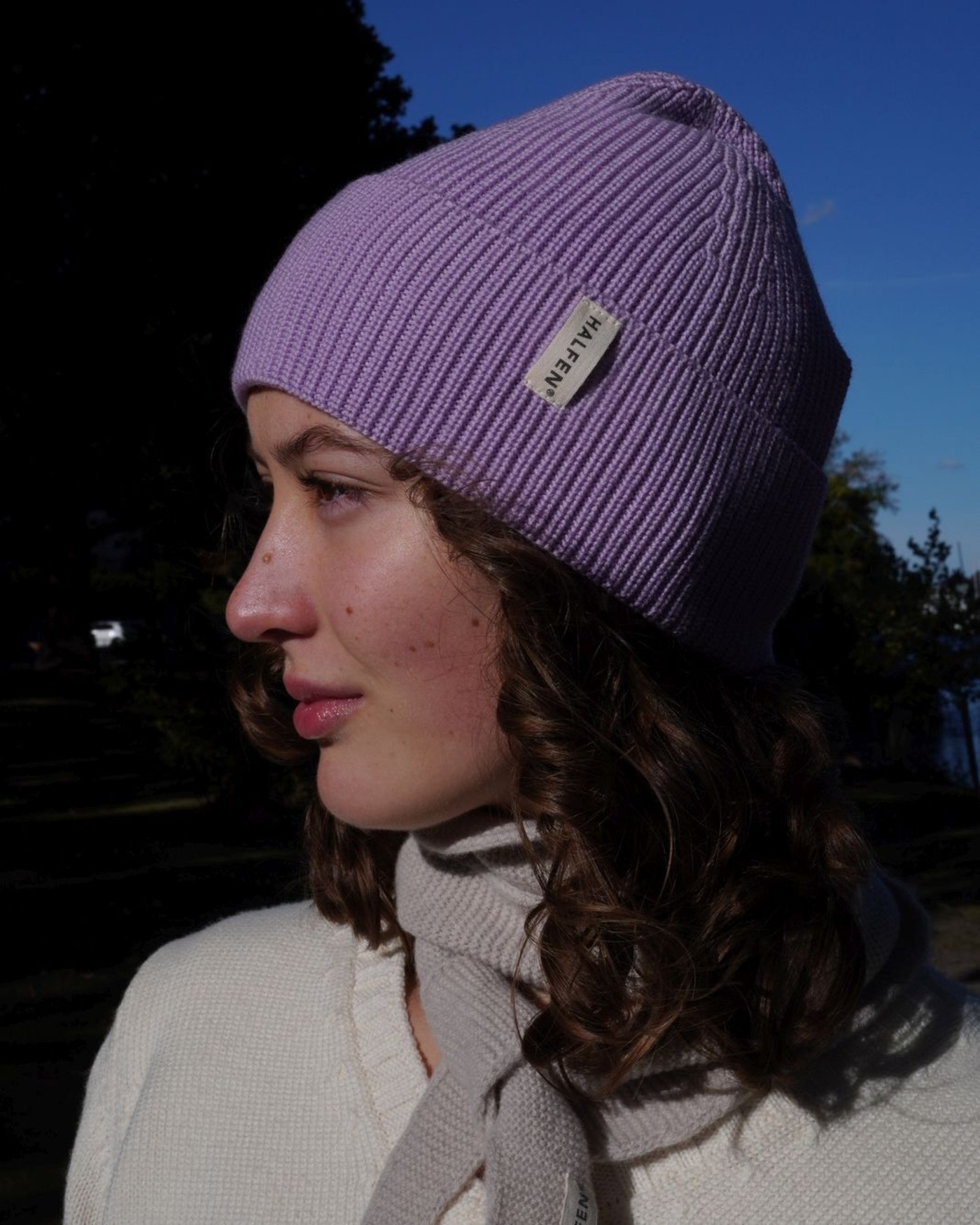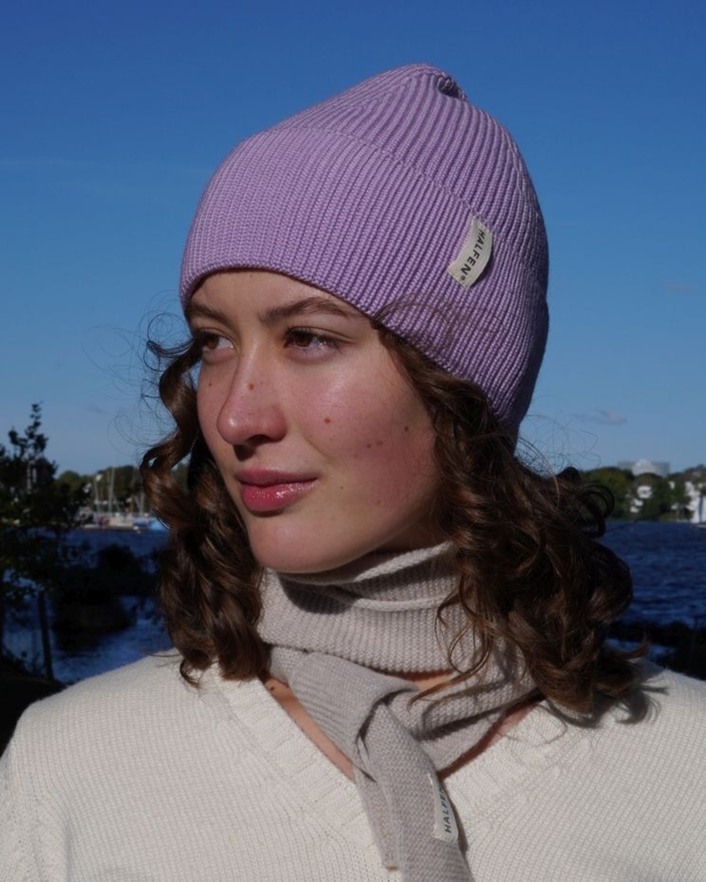 Halfen Strickerei Damen-Mütze aus Merinowolle - Flieder
