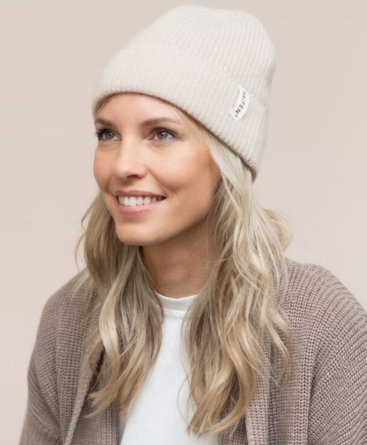Halfen Strickerei Damen-Mütze aus Merinowolle - Natur