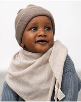 Dieses Dreieckstuch passt sowohl Kindern als auch Erwachsenen. Ein passender Begleiter, der Euer Kind mehrere Winter lang warm hält.