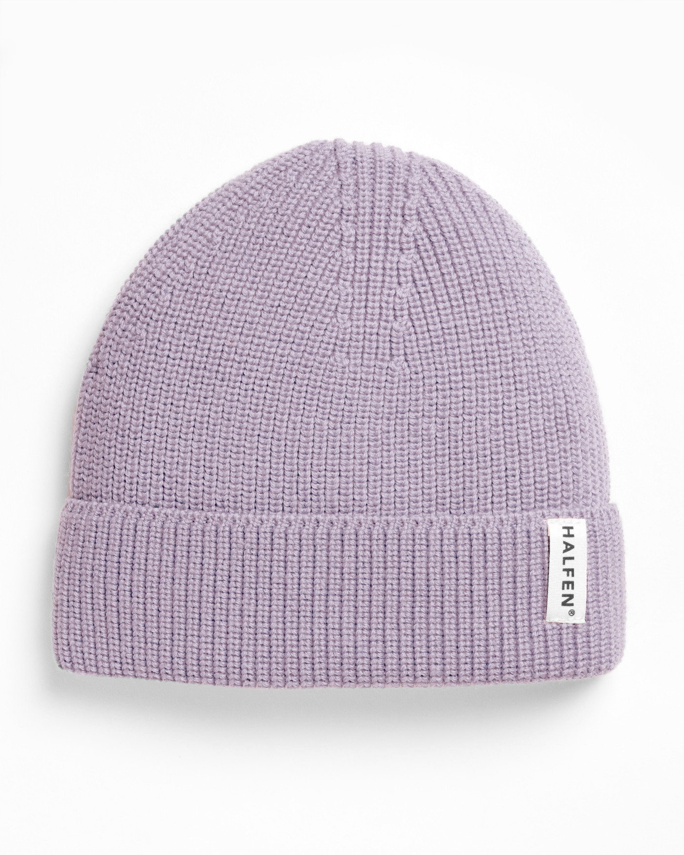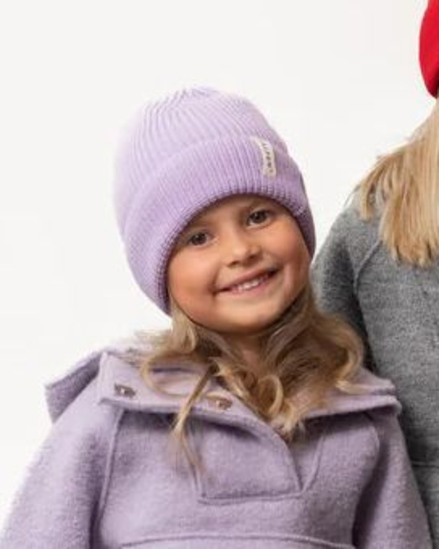 Halfen Strickerei Kinder-Mütze/Beanie aus Merinowolle - Flieder