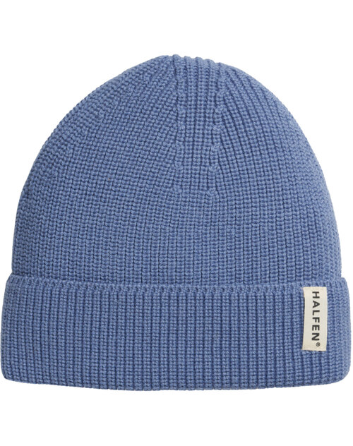 Halfen Strickerei Mütze/Beanie aus Merinowolle - Mittelblau