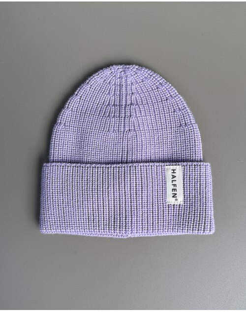 Halfen Strickerei Neugeborenen-Mütze aus Merinowolle für 0-7 M.- Flieder