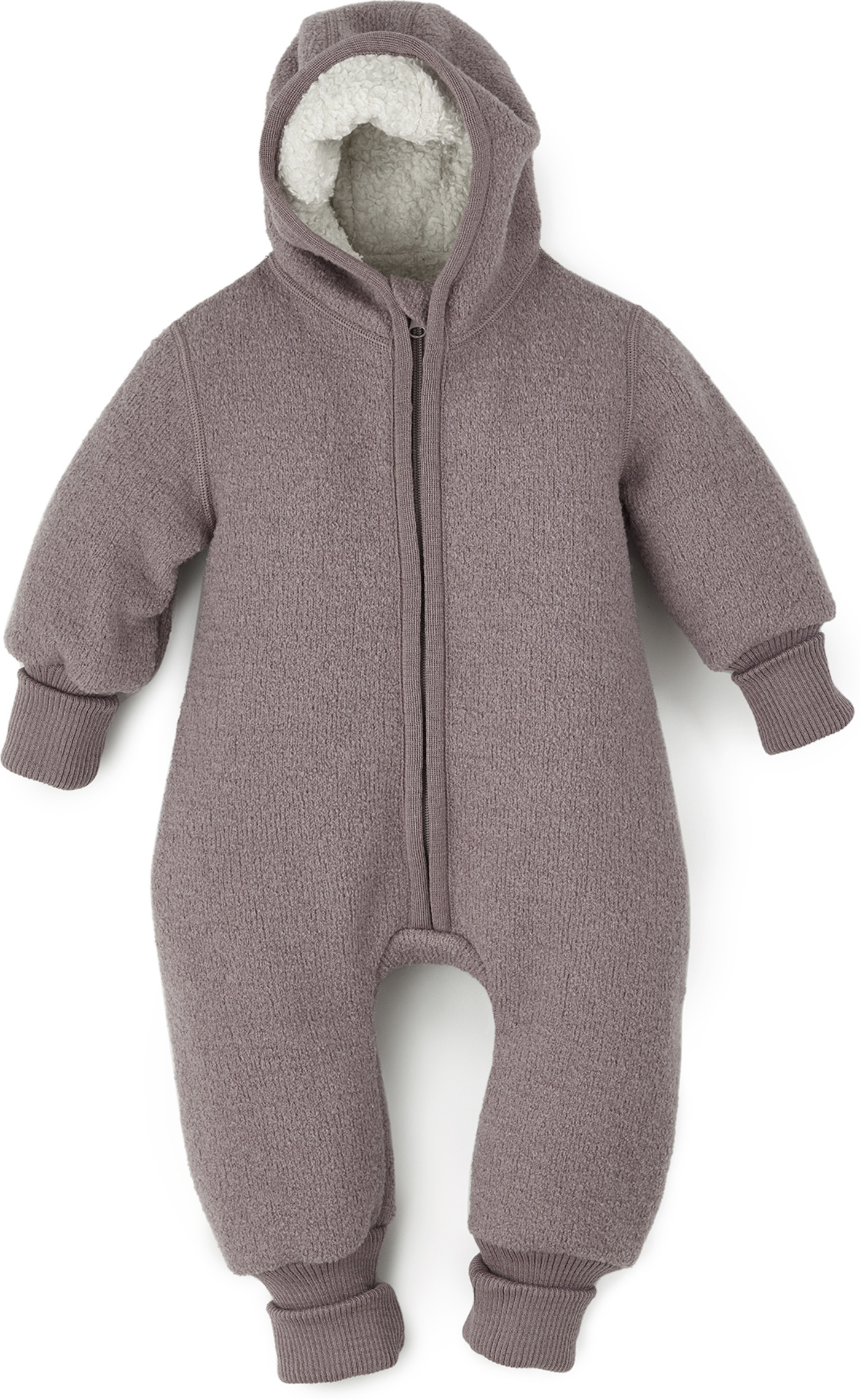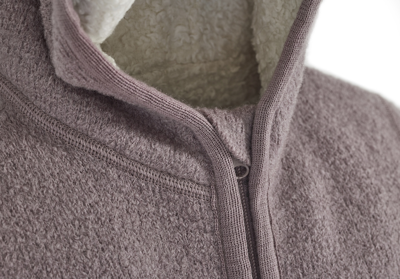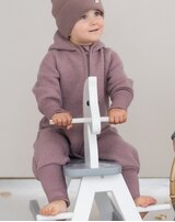 Halfen Strickerei Walk-Overall mit Teddykapuze und Bündchen aus Schurwolle - Mauve