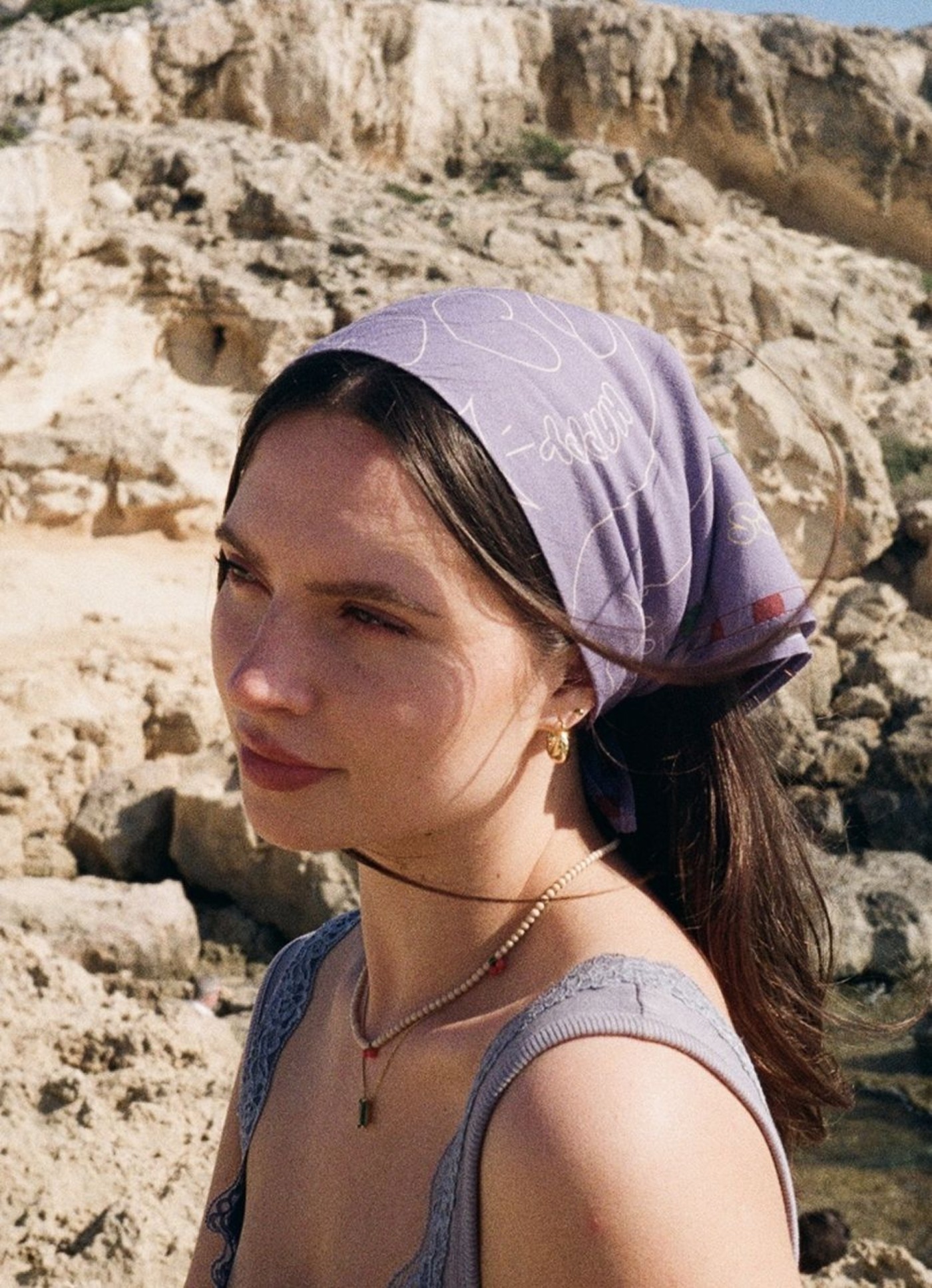 Dieser universell einsetzbare Bandana von Happy Mess ist durch die Material-Kombi aus Viskose und Leinen super weich und wird, ob am Hals in den Haaren oder der Handtasche, zum tollen Hingucker.