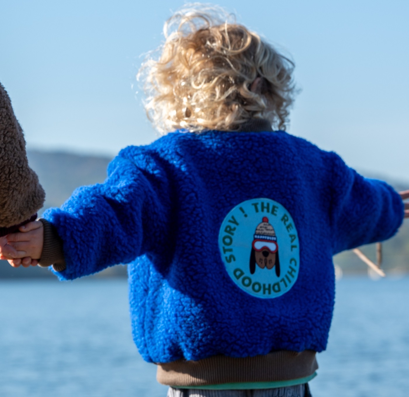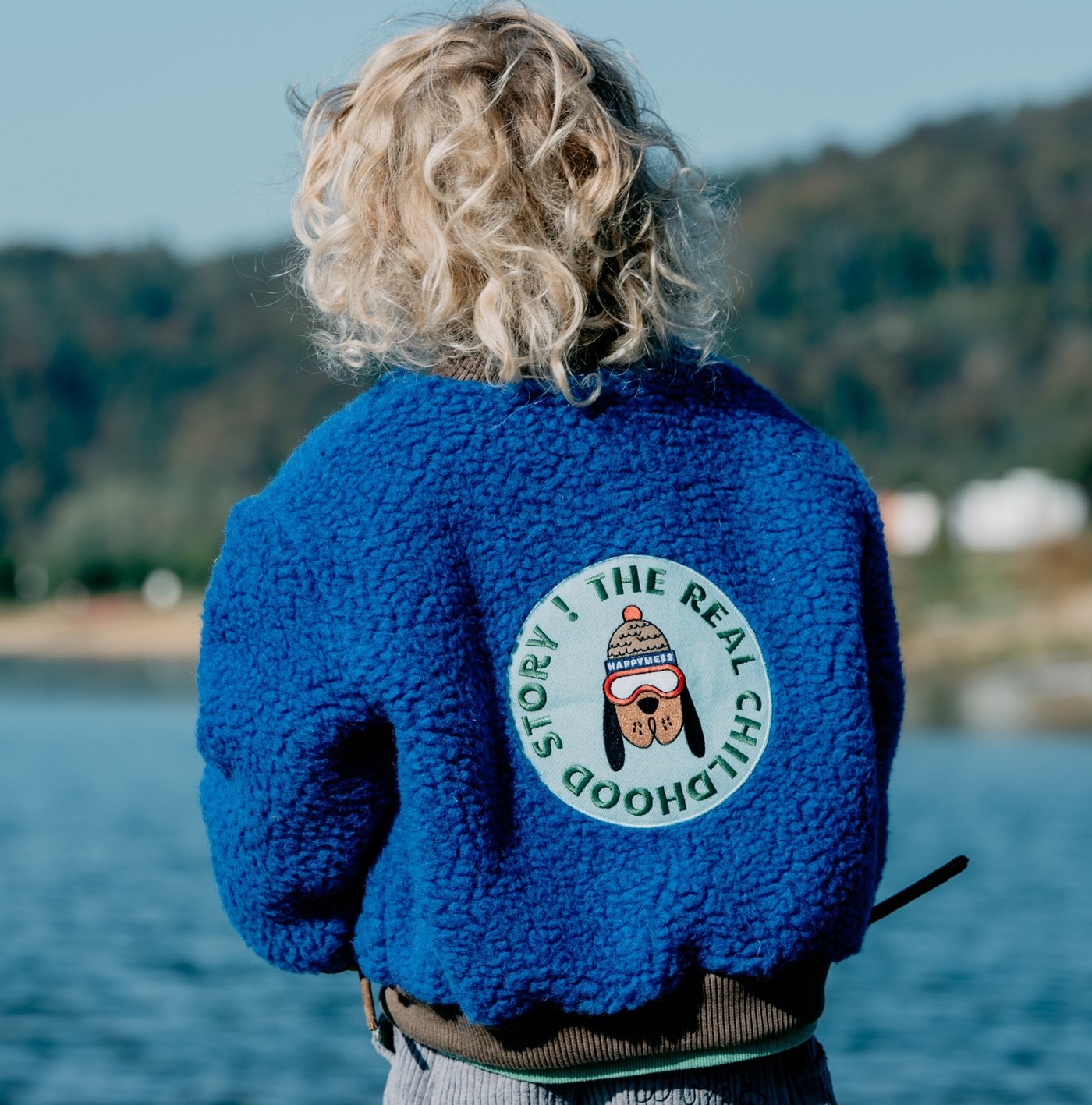 Happy Mess Teddy-/Bomberjacke für Kinder aus Merinowolle - Cobalt
