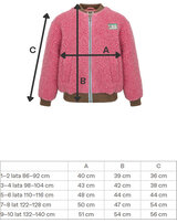 Das Model auf dem 1. Bild ist 106 cm groß und trägt die Größe 5-6 Jahre.
