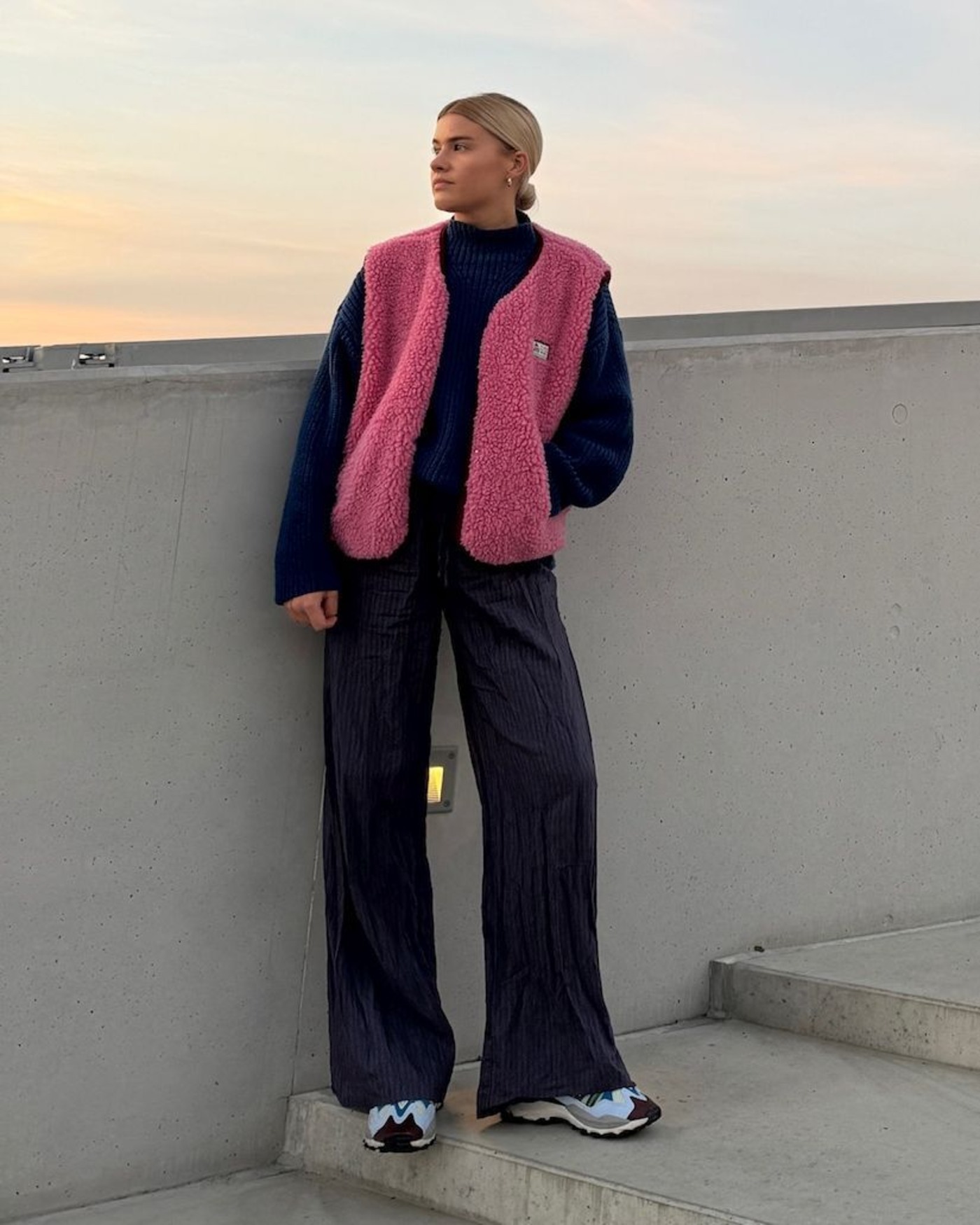 Die Weste fällt großzügiger aus und hat einen lockeren Schnitt.