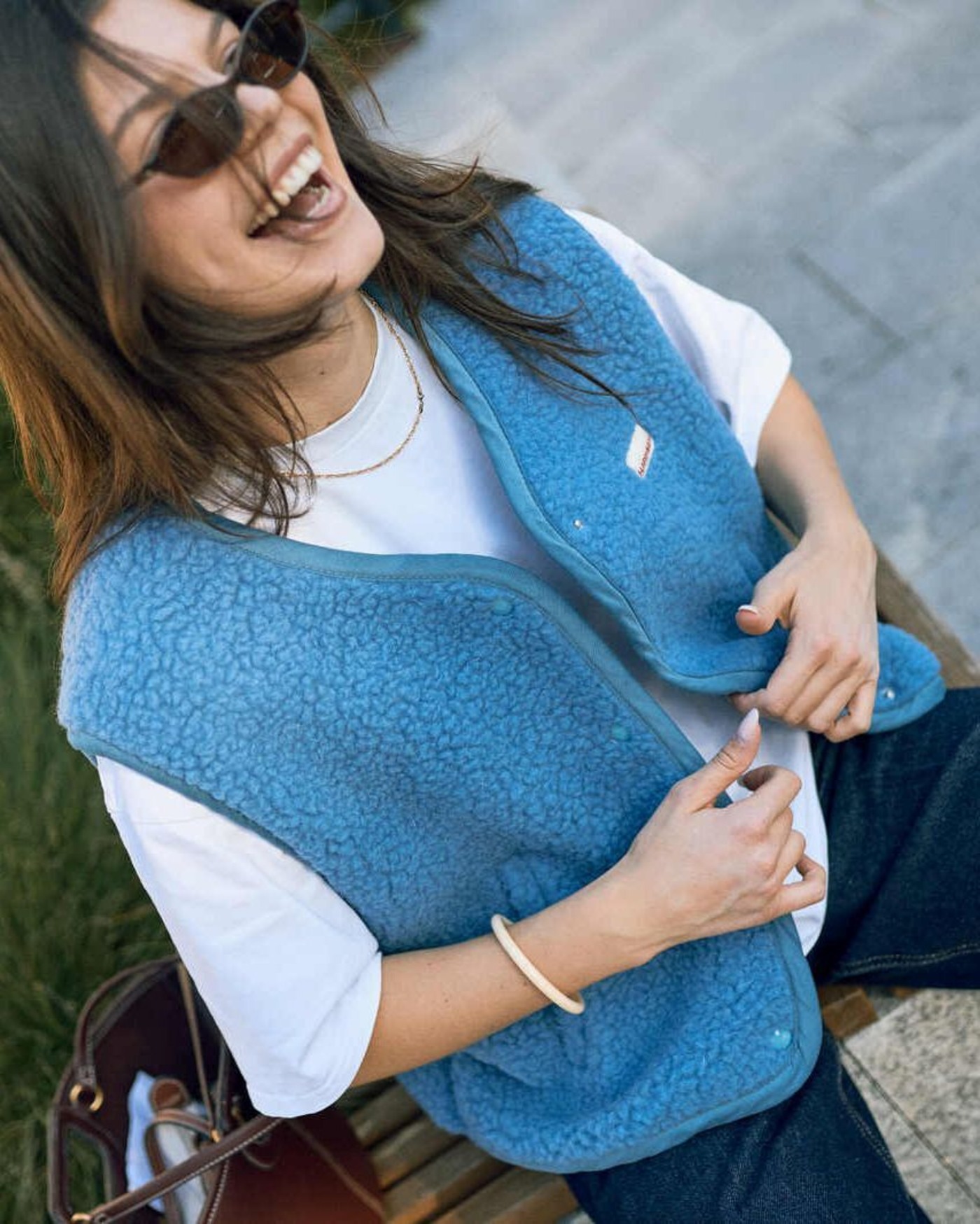 Die Weste fällt großzügiger aus und hat einen lockeren Schnitt.