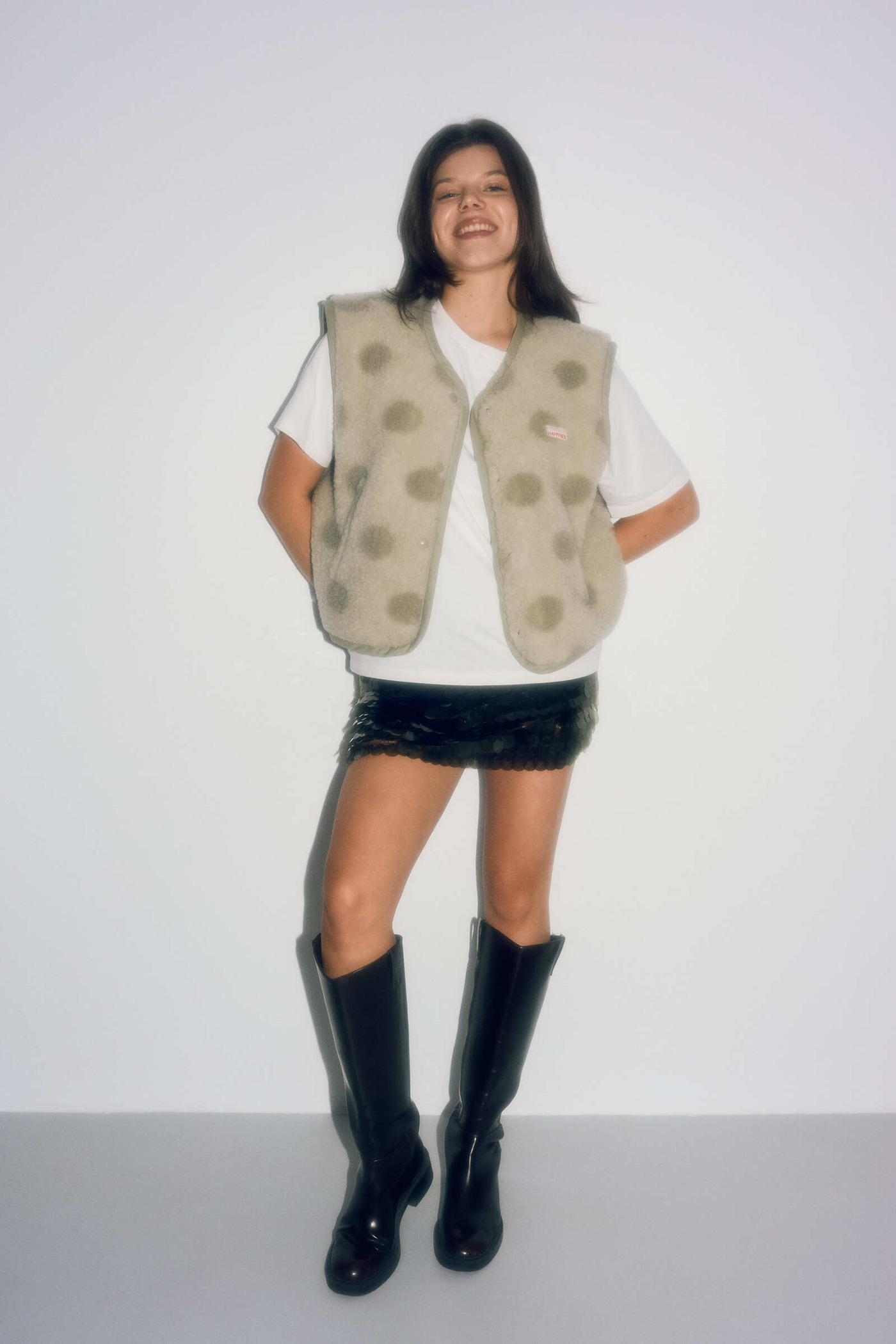 Die Weste fällt großzügiger aus und hat einen lockeren Schnitt.