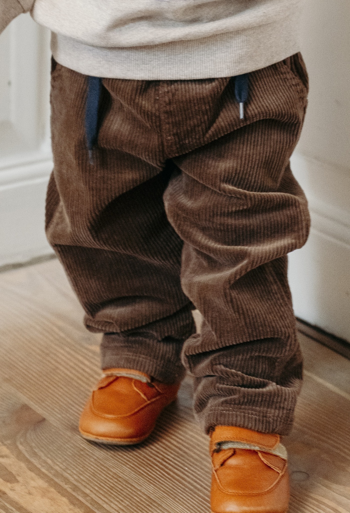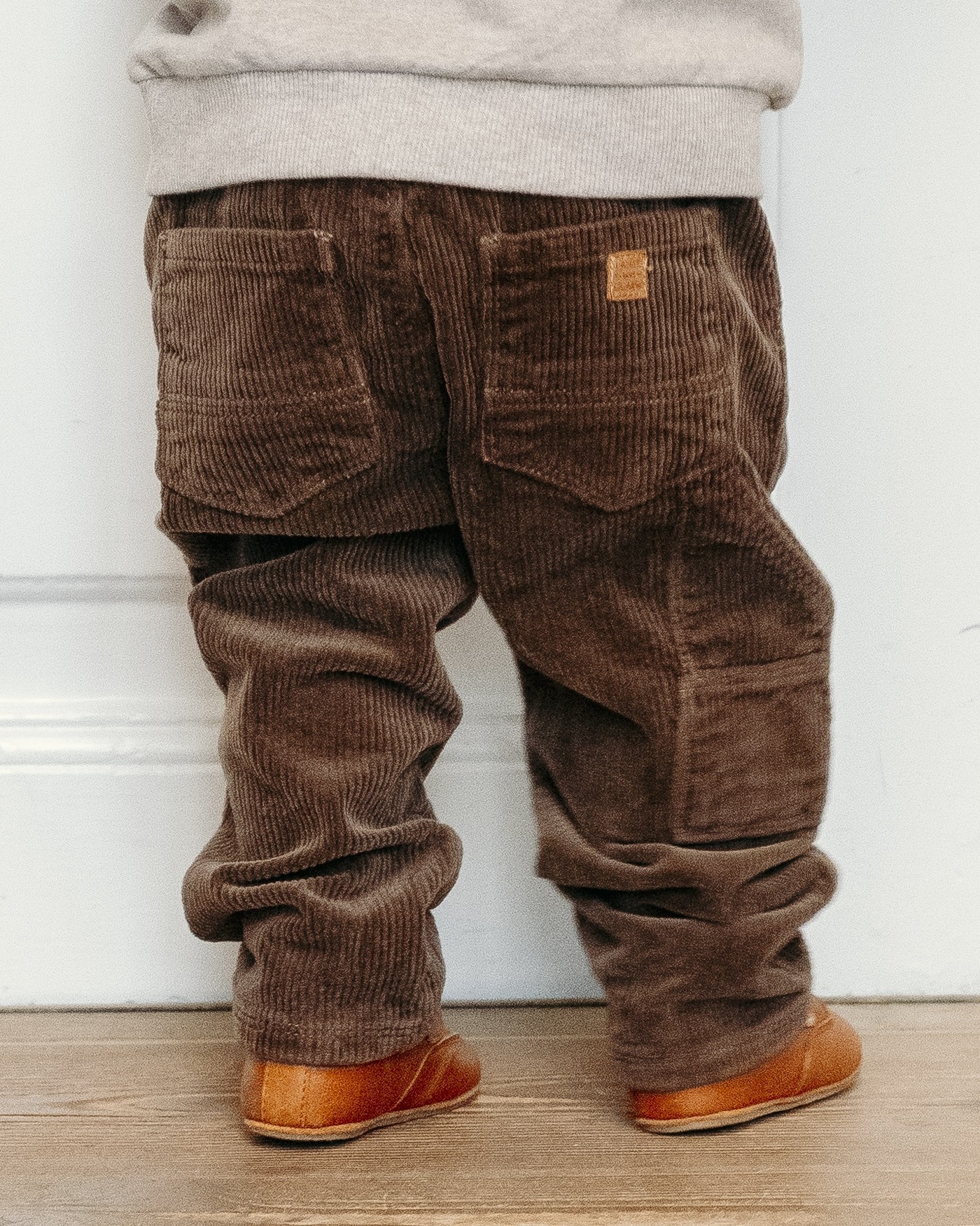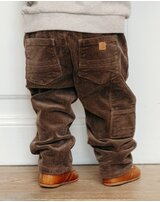 Tolle Cordhose mit Taschen vorne und hinten und einer Tasche auf dem rechten Hosenbein. Dieses Modell verfügt über einen Elastikbund und ein Schnürband in der Taille. Mit anpassbarer Taille. Dieses Produkt besteht zu 98 % aus Bio-Baumwolle.