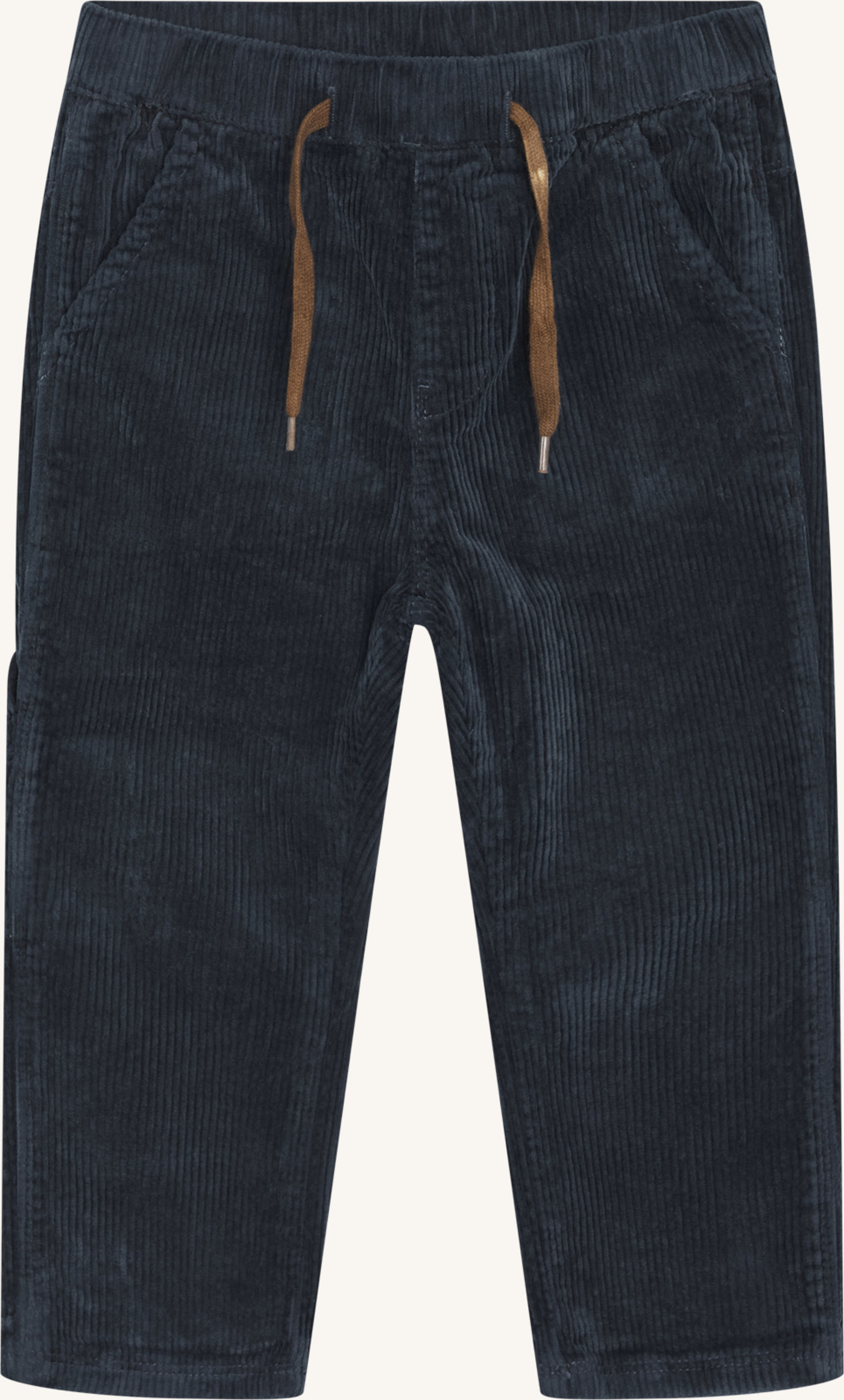 Tolle Cordhose mit Taschen vorne und hinten und einer Tasche auf dem rechten Hosenbein. Dieses Modell verfügt über einen Elastikbund und ein Schnürband in der Taille. Mit anpassbarer Taille. Dieses Produkt besteht zu 98 % aus Bio-Baumwolle.