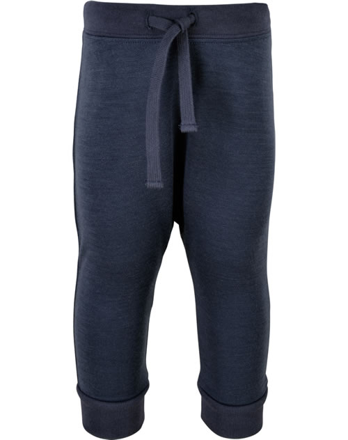 Bequeme Jogginghose mit Tunnelzug und tiefem Schritt von HUST AND CLAIRE. Durch den hohen Wollanteil hält die Hose schön warm und die Viskose aus Bambus sorgt für ein angenehmes Tragegefühl. Die Hose kann sowohl solo getragen werden oder als zusätzlicher Kälteschutz unter eine Outdoorhose oder einen Overall gezogen werden.