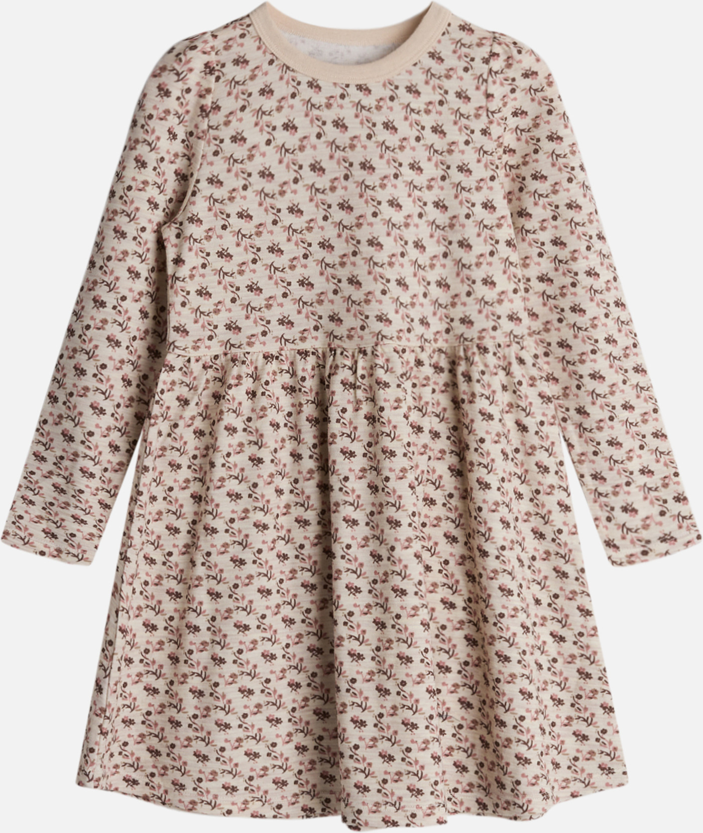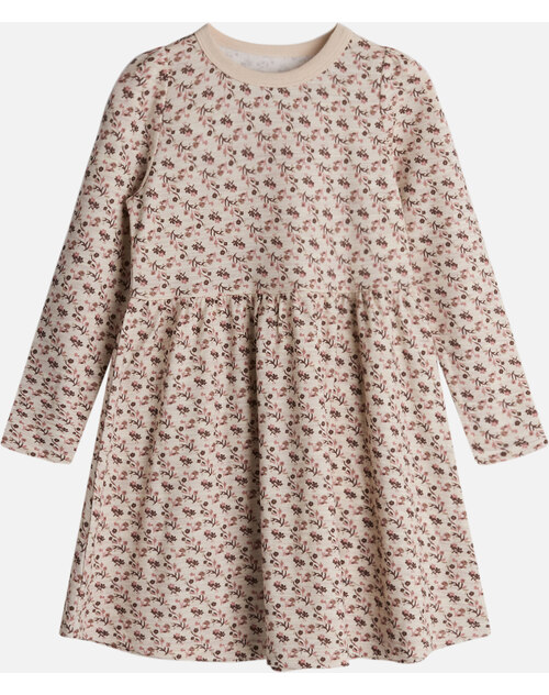 Geblümtes Kleid mit langen Ärmeln von HUST AND CLAIRE. Durch den hohen Wollanteil hält das Kleid schön warm und die Viskose aus Bambus sorgt für ein angenehmes Tragegefühl. Das Kleid lässt sich prima mit Leggings oder Strumpfhose kombinieren.