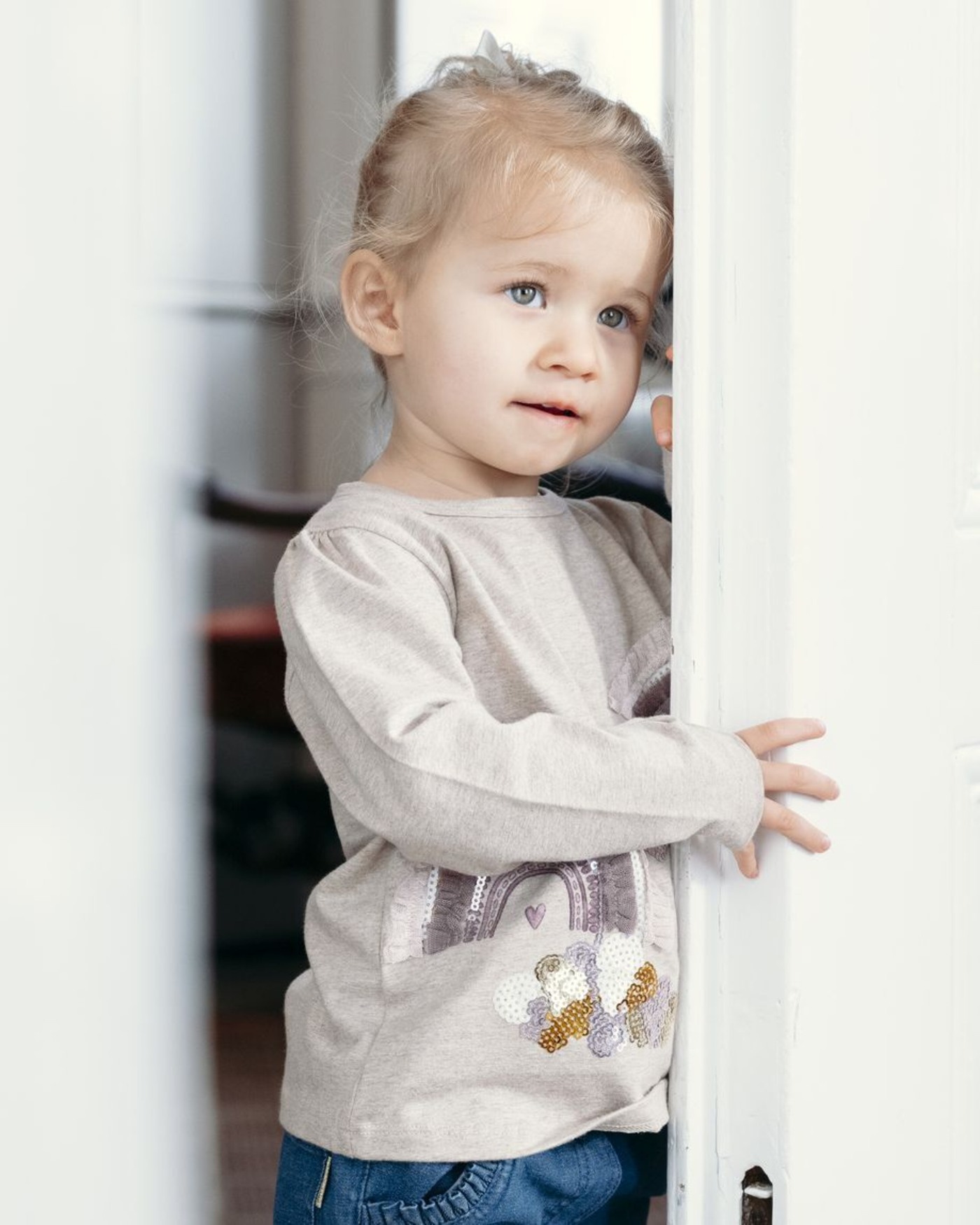 Langarmshirt aus weicher Baumwolle mit Regenbogenmotiv vorne und einem Faltendetail an den Schultern :)