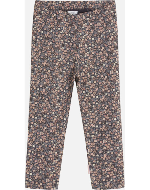 Hübsche Leggings für Mädchen von HUST AND CLAIRE. Die Leggings ist aus weichem Jersey und bietet einen hohnen Tragekomfort. Besonders schöne Details sind das zarte Blumenmuster und die gold glitzernden Blüten.