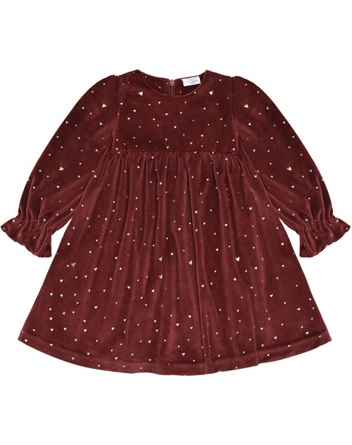 Dieses schöne langärmlige Samt-Kleid mit Rundhalsausschnitt von Hust and Claire wird mit seinen gold-schimmernden Herzen und der wunderschönen Samt-Haptik zum liebsten Begleiter für festliche Anlässe und auch den Alltag. ✨