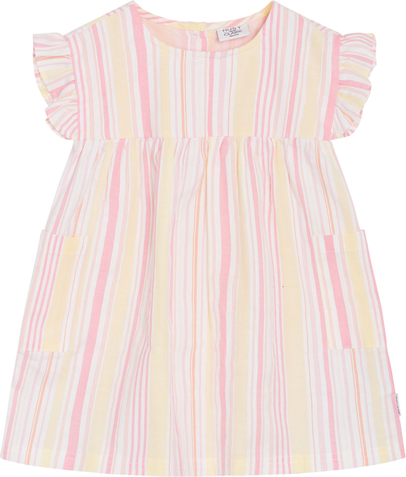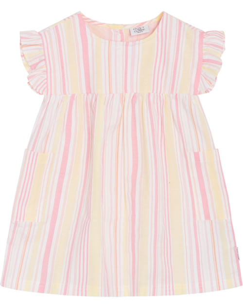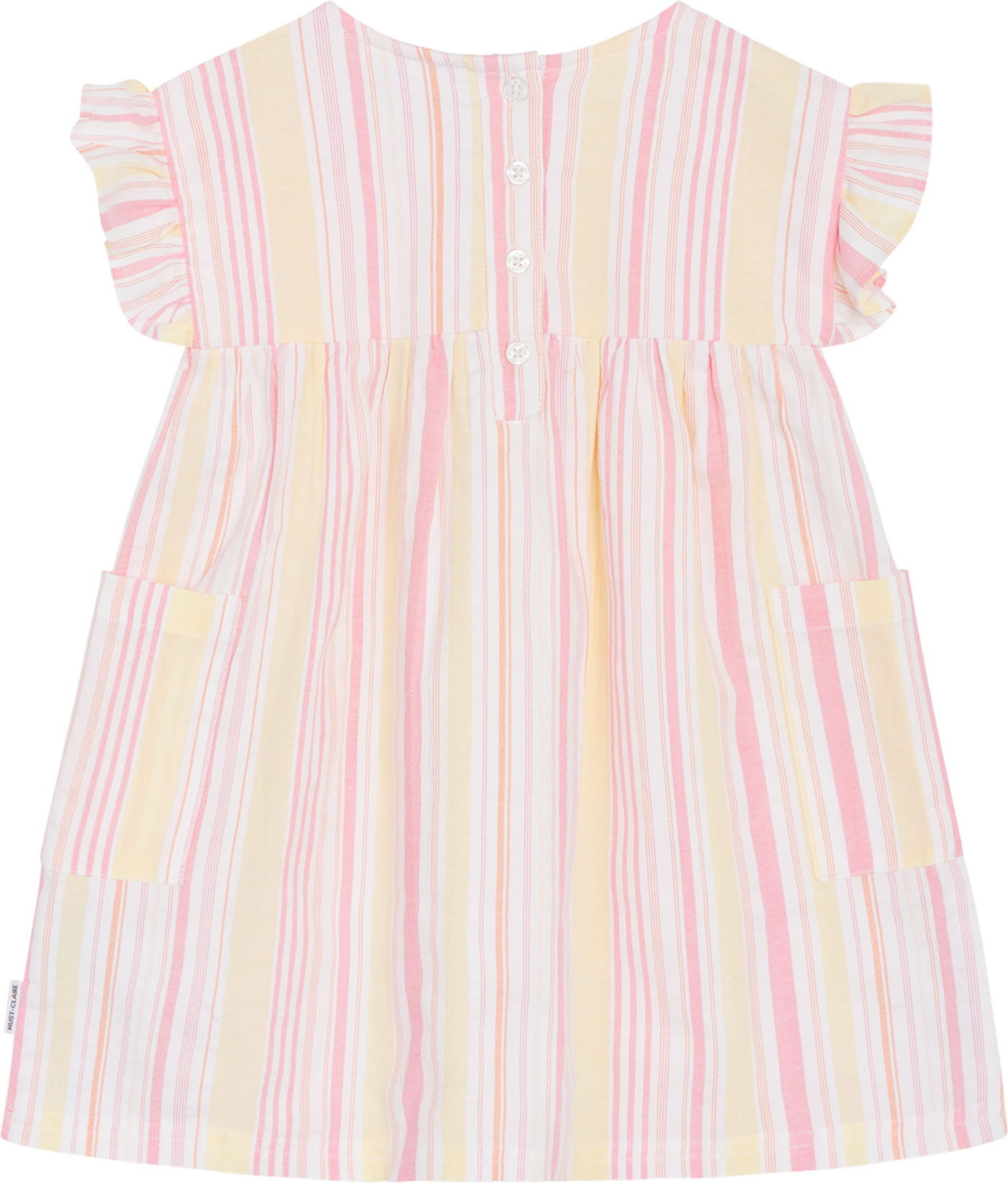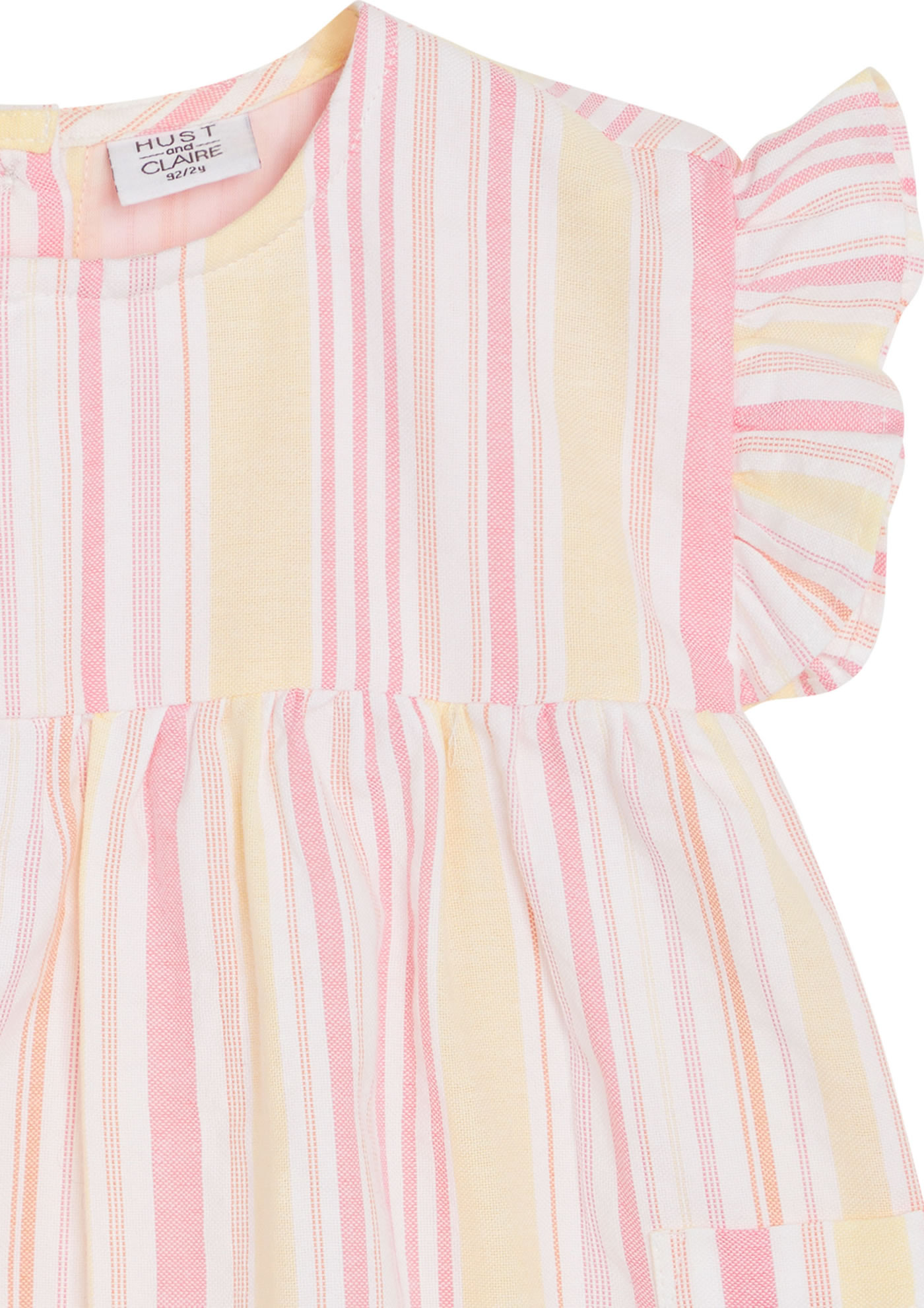 Tolles Sommer-Kleid von HUST AND CLAIRE mit Flügelärmeln. Das Kleid hat einen lockeren Schnitt und bietet viel Bewegungsfreiheit. Verschlossen wird es mit einer Knopfleiste auf der Rückseite. Besonders schön ist das Streifenmuster, welches sich auf dem ganzen Kleid wiederfindet. Zwei seitliche Taschen bieten Platz für Kleinigkeiten.