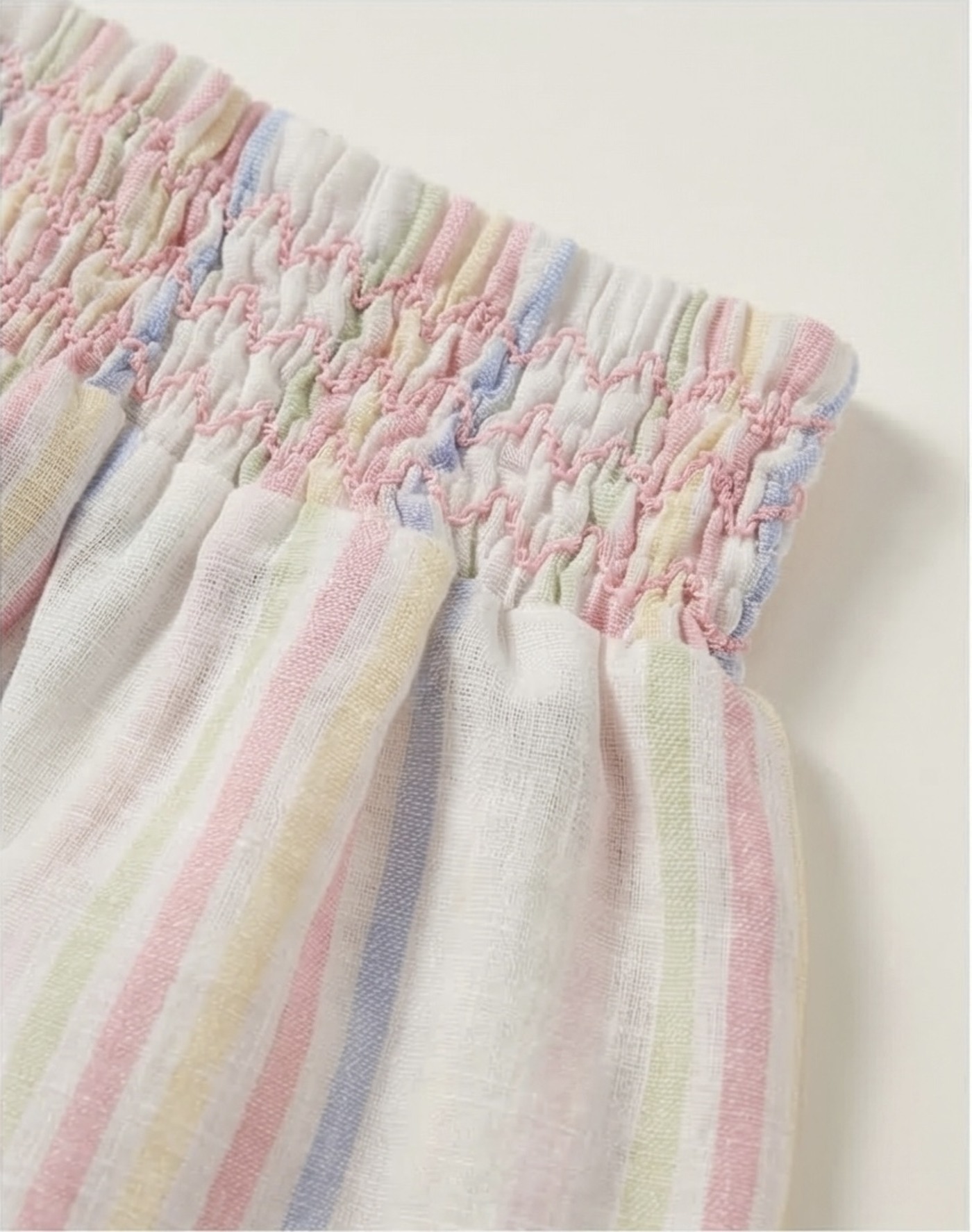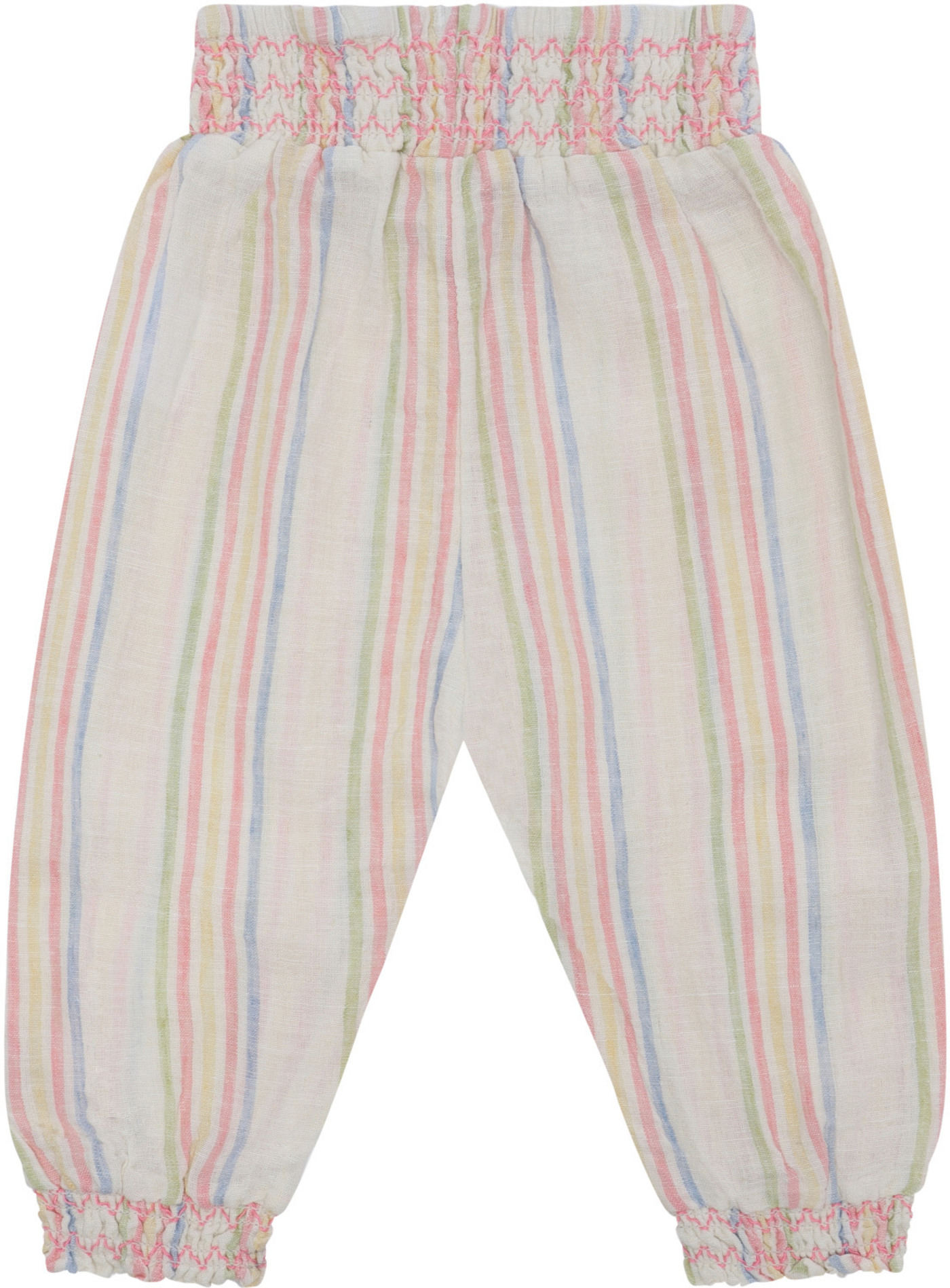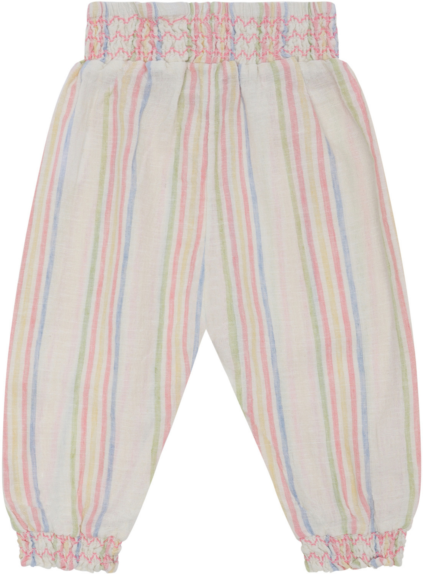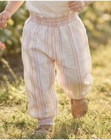 Die süße Sommerhose 'Teresa Hello' ist aus einer leichten Baumwoll-/Leinen-Mischung gefertigt und begeistert mit einem farbenfrohen Streifen-Design in natürlich-sanften Tönen 💛💚💗💙