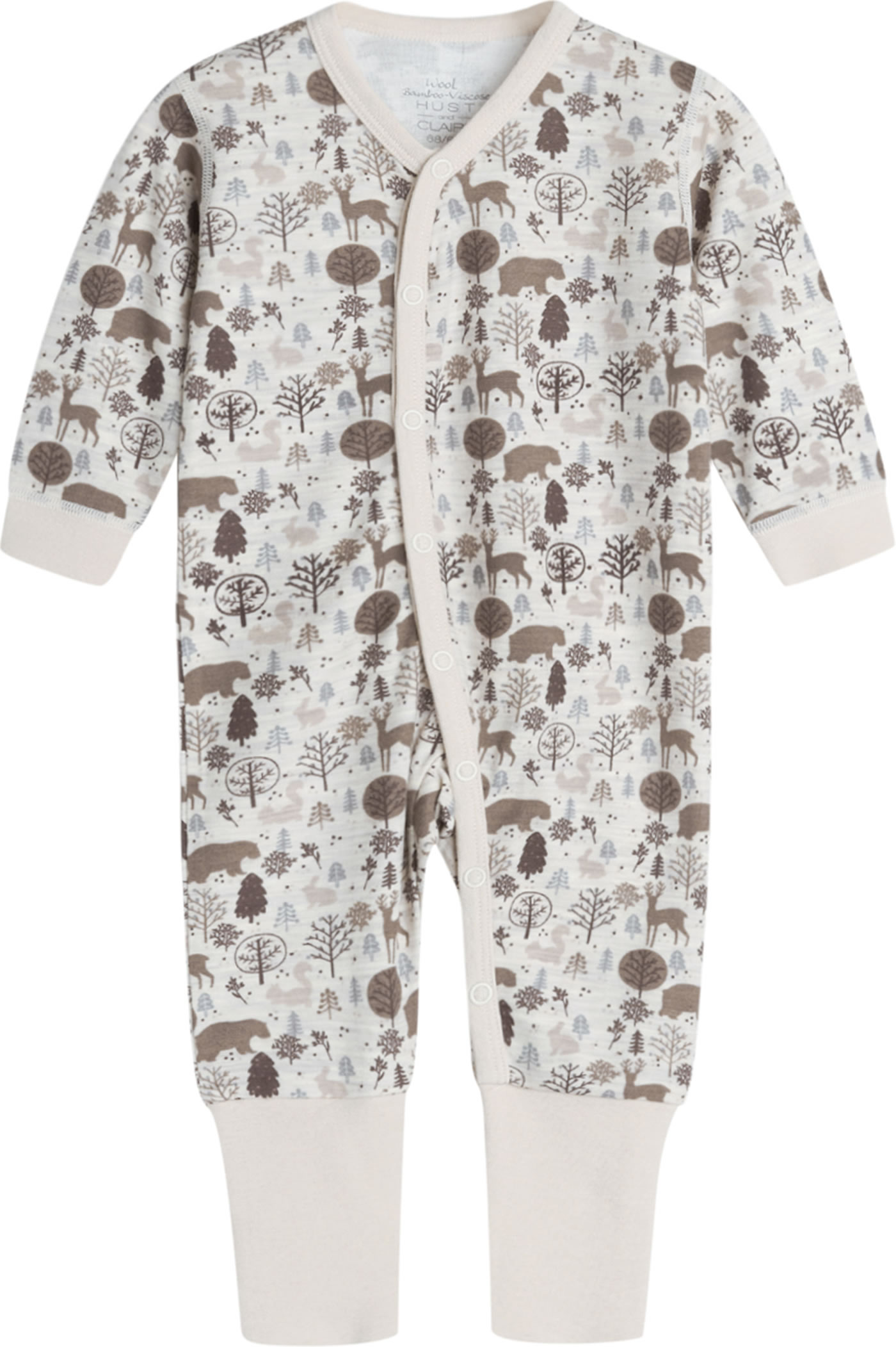 Strampler mit langen Ärmeln von HUST AND CLAIRE. Die durchgehnede Druckknopfleiste hilft beim An- und Ausziehen. Durch den hohen Wollanteil hält der Strampler schön warm und die Viskose aus Bambus sorgt für ein angenehmes Tragegefühl. Die Beinenden lassen sich umstülpen, da bleiben die Füße schön warm.