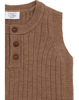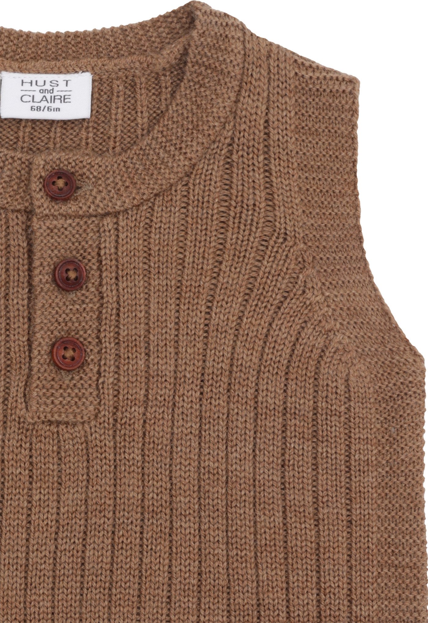 drei Holzknöpfe, die das An-und Ausziehen über den Kopf erleichtern, sind ein liebevolles Detail.