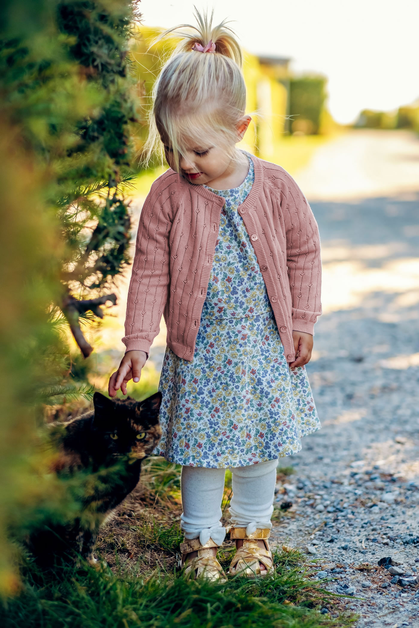Schöne Strickjacke für Mädchen von HUST AND CLAIRE. Verschlossen wird die Strickjacke mit schimmernden Knöpfen. Besonders schön ist das hübsche Lochmuster. Schmale Bündchen sorgen für einen perfekten Sitz.