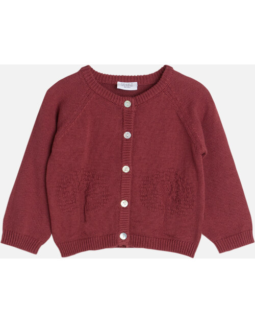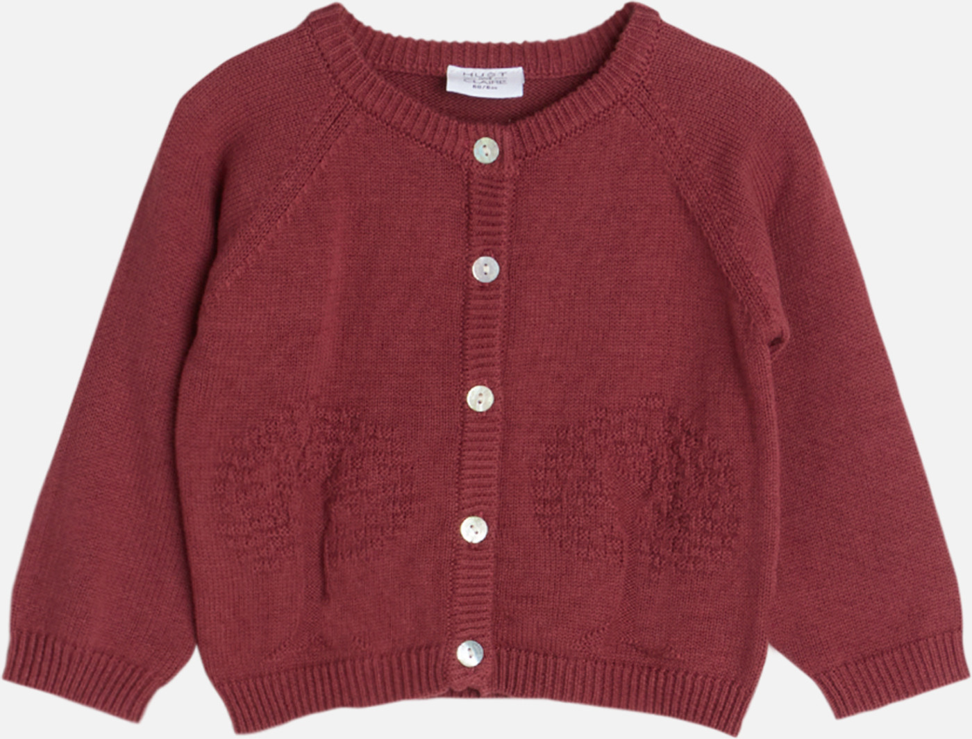 Schöne Strickjacke für Mädchen von HUST AND CLAIRE. Verschlossen wird die Strickjacke mit schimmernden Knöpfen. Besonders schön sind die eingestickten Bäume auf der Vorderseite.