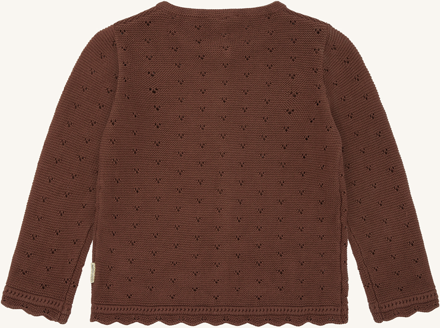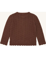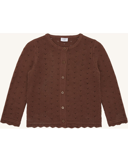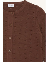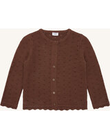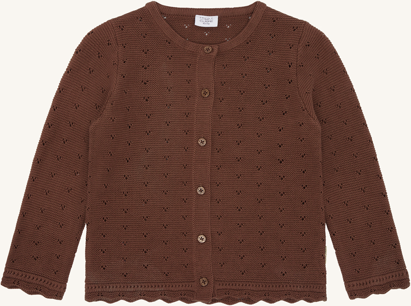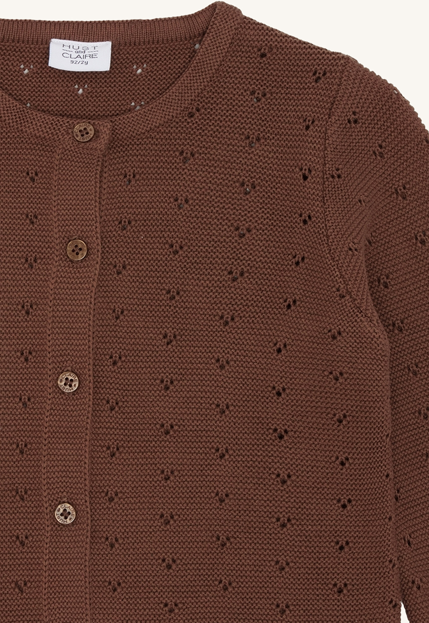 Schöne Strickjacke für Mädchen von HUST AND CLAIRE. Verschlossen wird die Strickjacke mit schimmernden Knöpfen. Besonders schön ist das Ajourmuster.