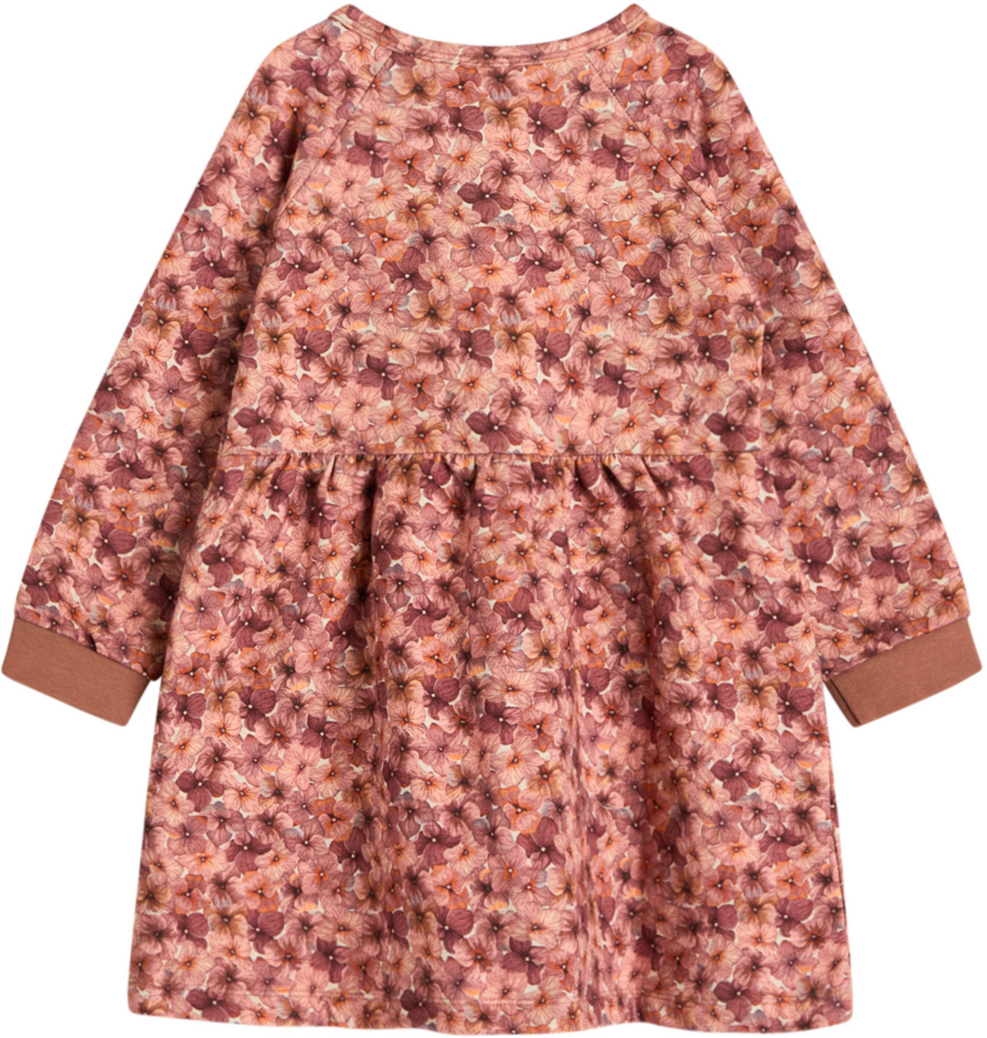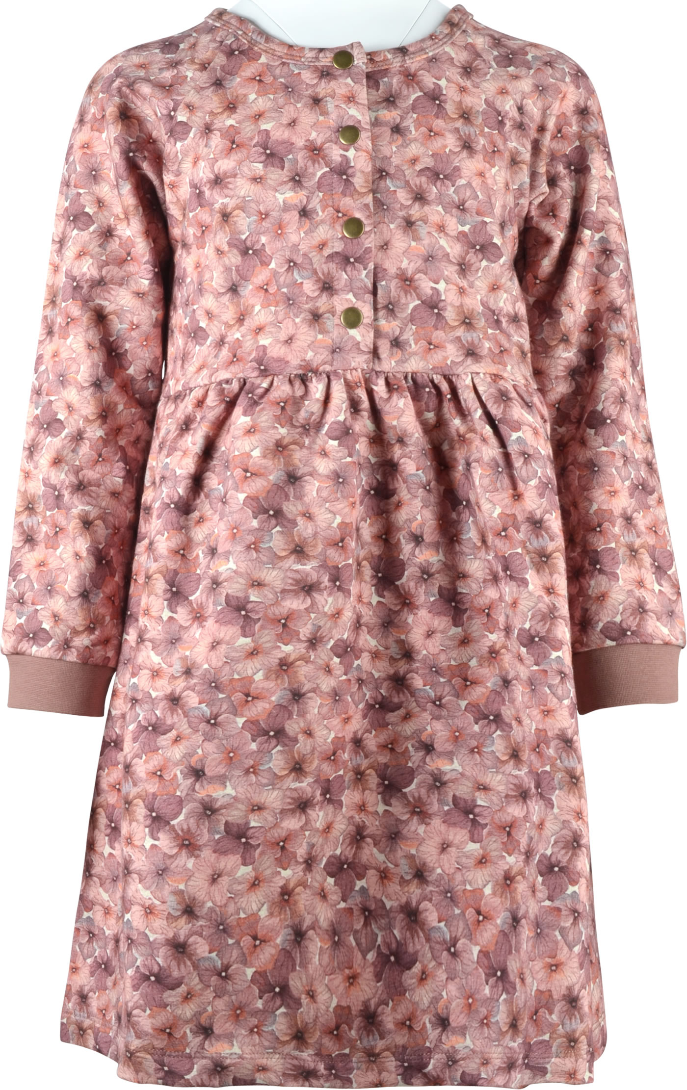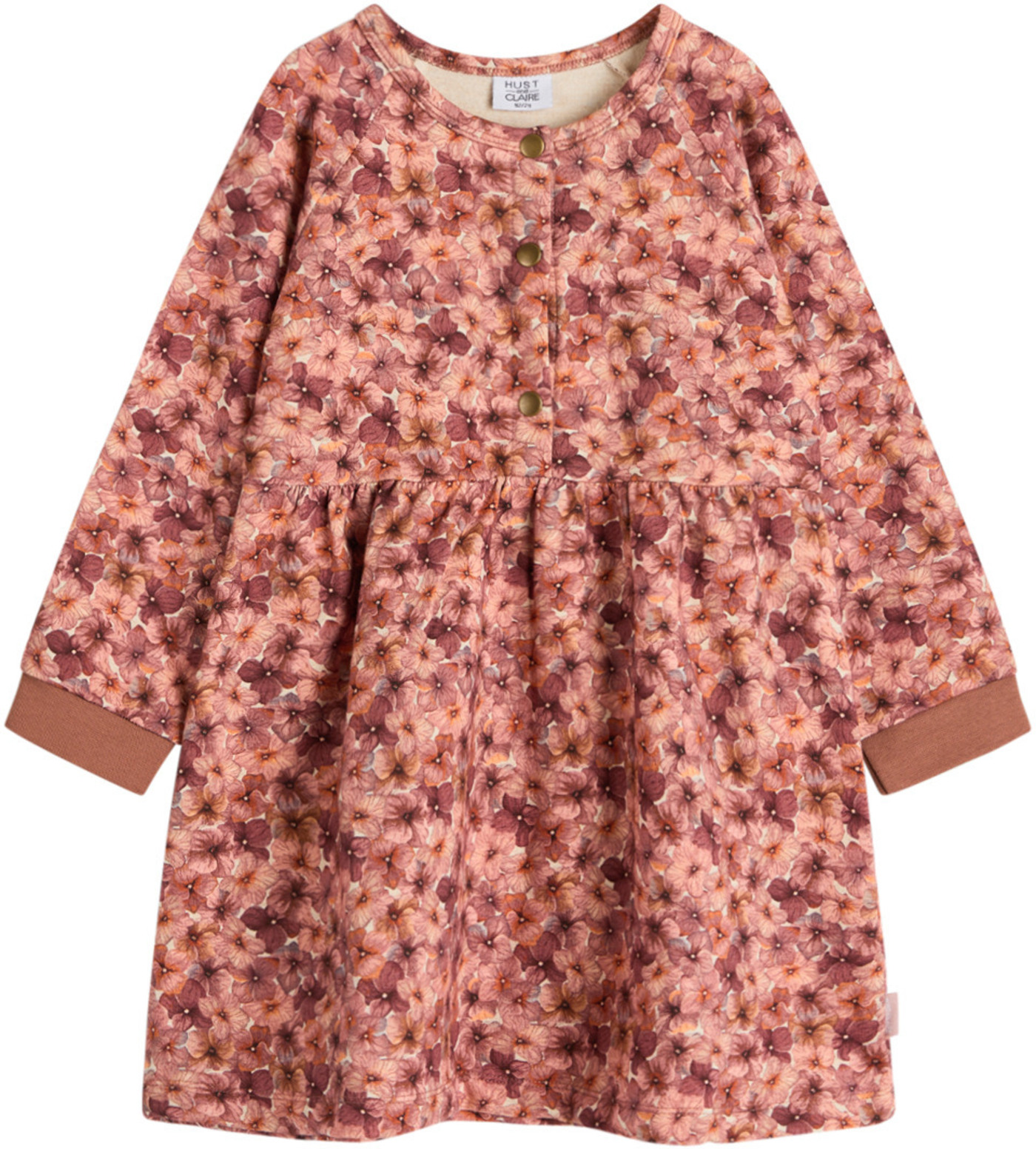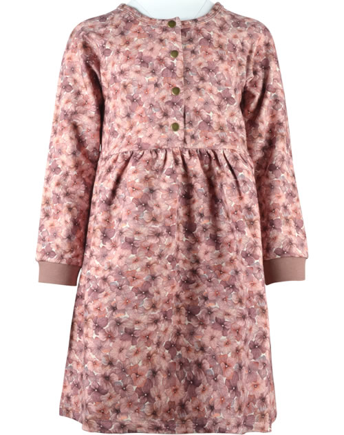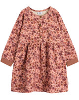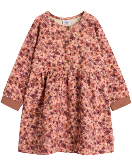 Warmes Sweat-Kleid mit langen Ärmeln von HUST AND CLAIRE. Das zart geblümte Kleid ist innen weich angeraut und wird mit Druckknöpfen auf der Voerderseite verschlossen. Das Material aus ökologisch hergestellter Baumwolle und der lockere Schnitt sorgen für einen hohen Tragekomfort. Das Kleid lässt sich prima mit Leggings oder Strumpfhose kombinieren.