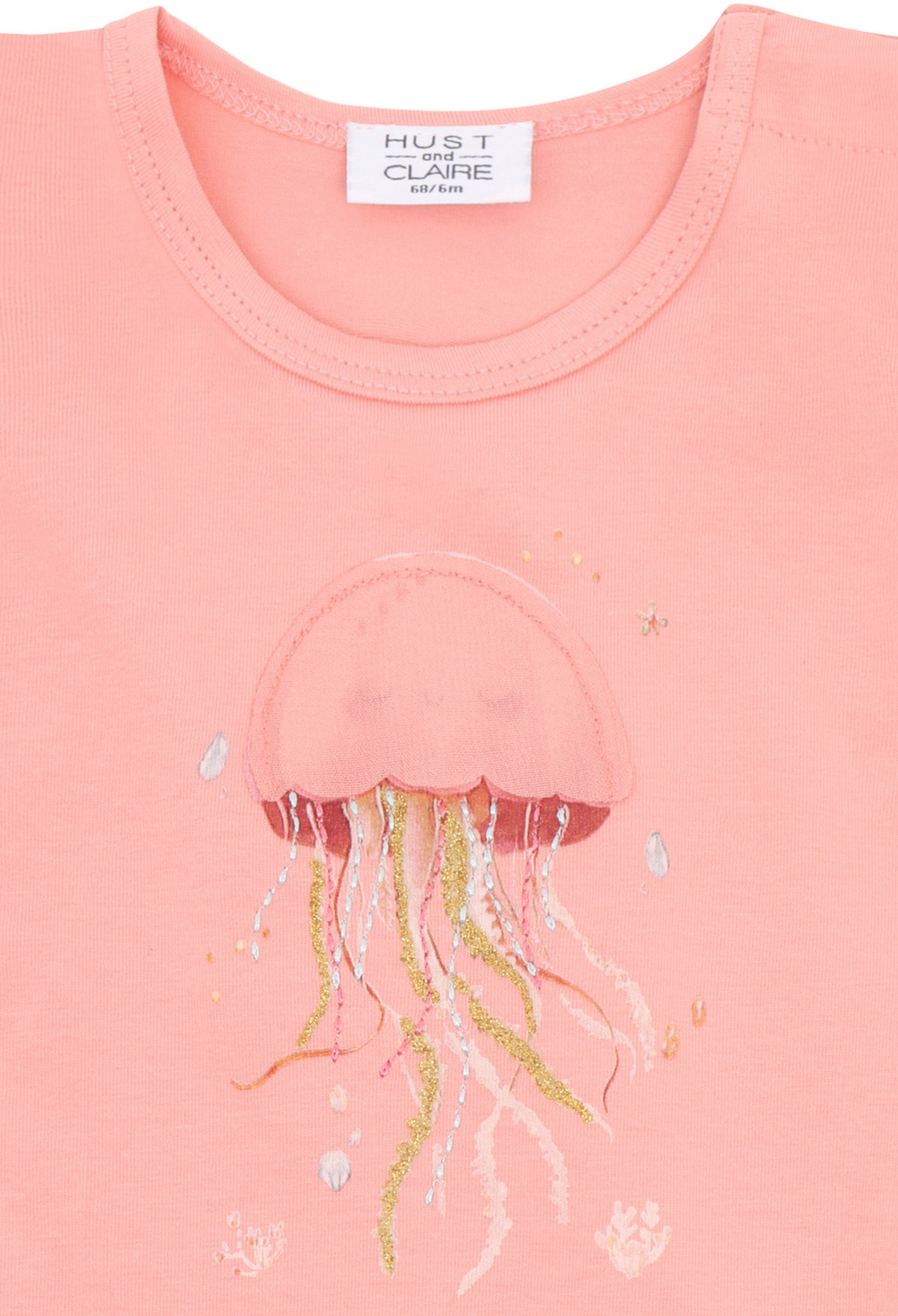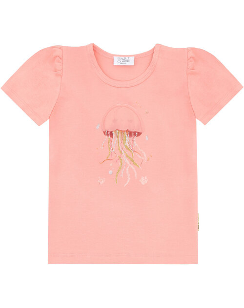 Das T-Shirt 'Alma Goople' ist aus wunderbar weicher Baumwolle gefertigt und begeistert mit einem süßen Quallen-Print mit zarten Glitzerdetails und verspielten Stickerein 🪸✨
