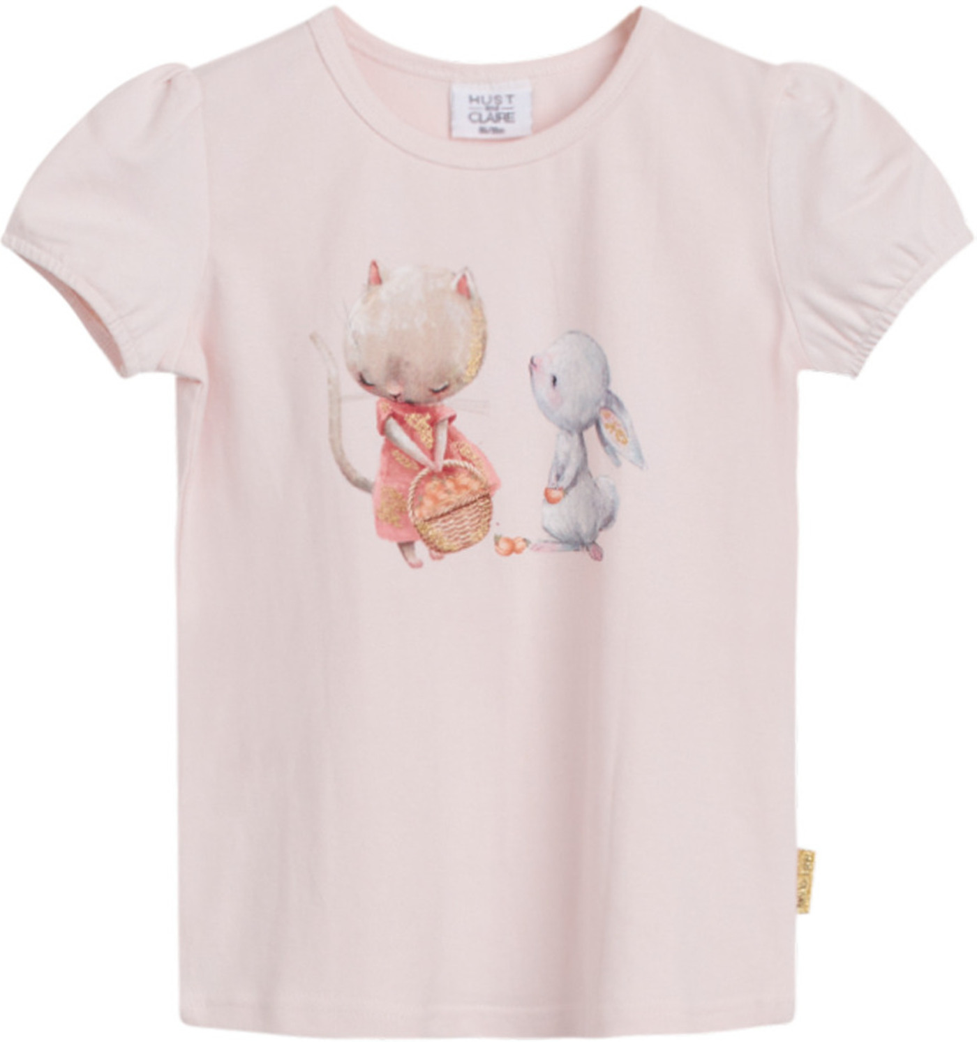 Hübsches T-Shirt mit kurzen Ärmeln von HUST AND CLAIRE. Schöne Details sind die Raffungen an den Ärmeln und der romantische Print mit Hase und Katze und goldschimmernden Details. Der lockere Schnitt und das weiche Material aus teilweise organisch hergestellter Baumwolle sorgen für einen hohen Tragekomfort.