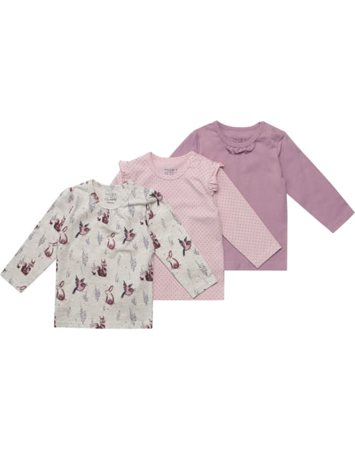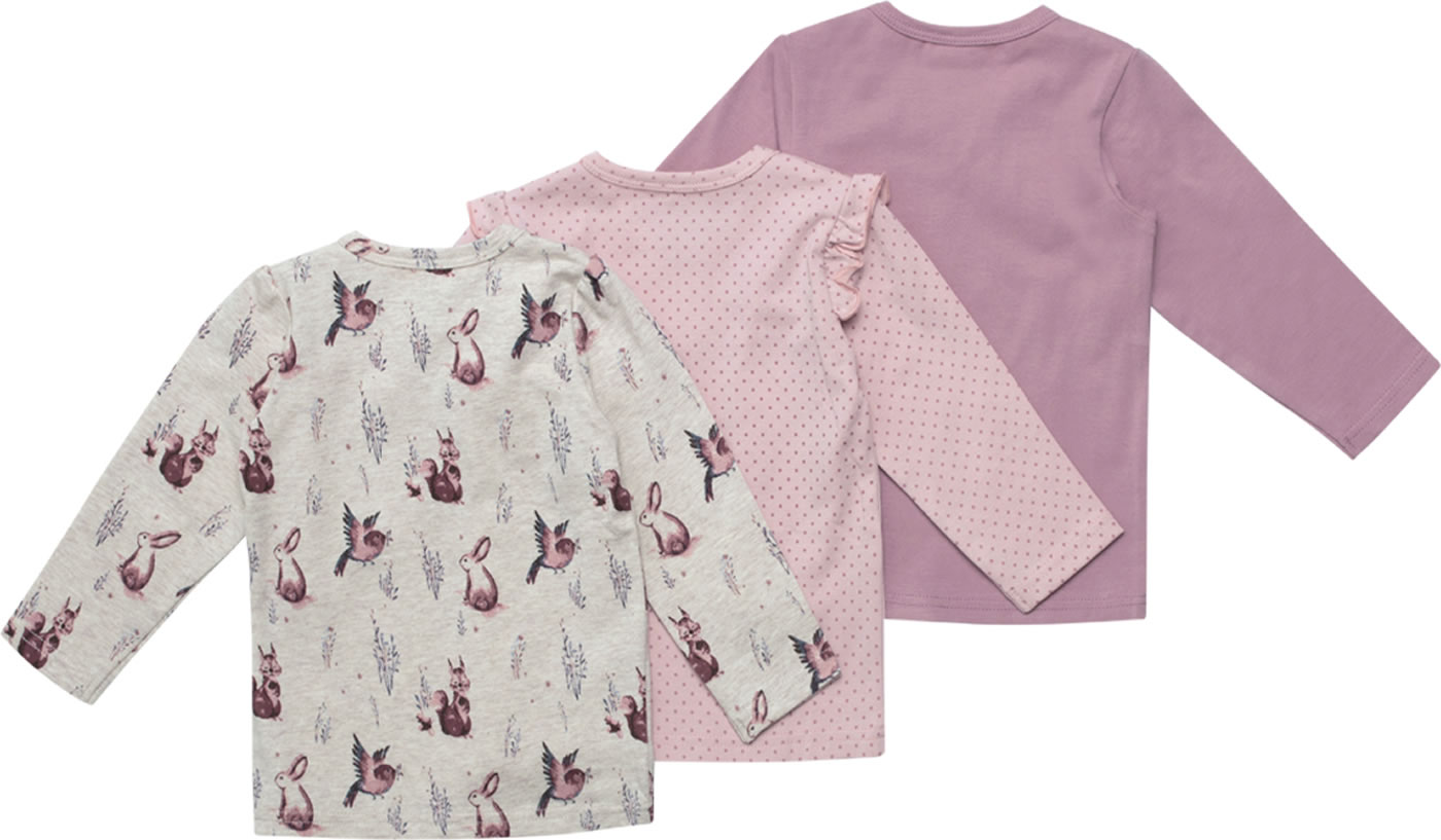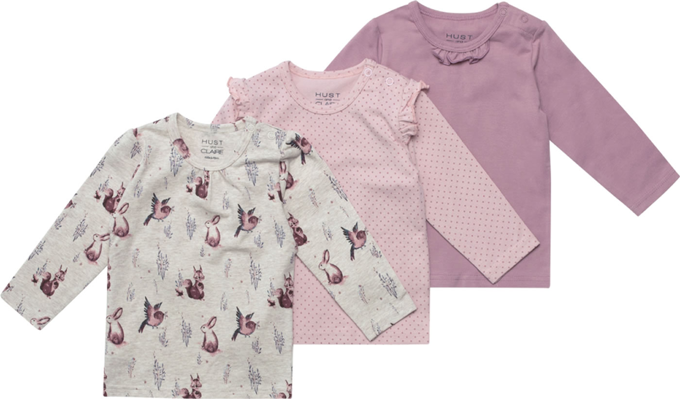 T-Shirts im 3er Set mit langen Ärmeln von HUST AND CLAIRE für Mädchen. Ob gepunktet, uni oder mit niedlichen Waldtieren - diese Shirts lassen sich prima kombinieren. Zwei Druckknöpfe auf der Schulter erleichtern das An- und Ausziehen und der weiche Jerseystoff bietet einen hohen Tragekomfort.