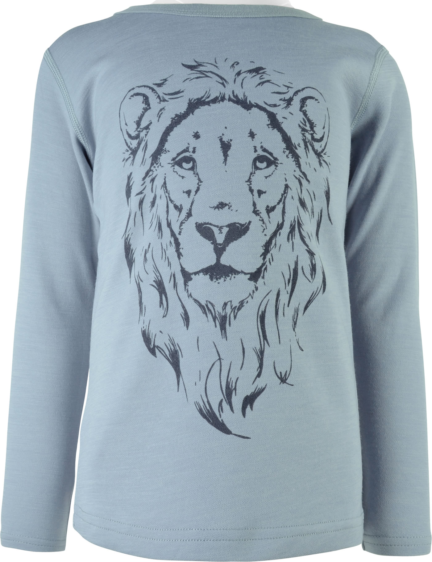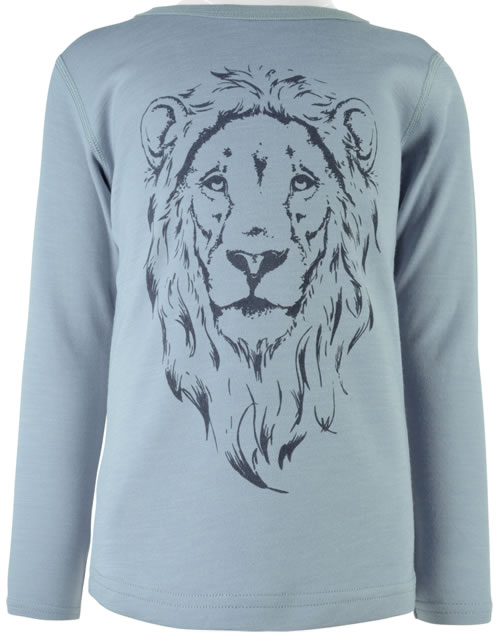 T-Shirt mit langen Ärmeln von HUST AND CLAIRE. Ein toller Hingucker ist der Löwenkopf auf der Vorderseite. Durch den hohen Wollanteil hält das Shirt schön warm und die Viskose aus Bambus sorgt für ein angenehmes Tragegefühl.