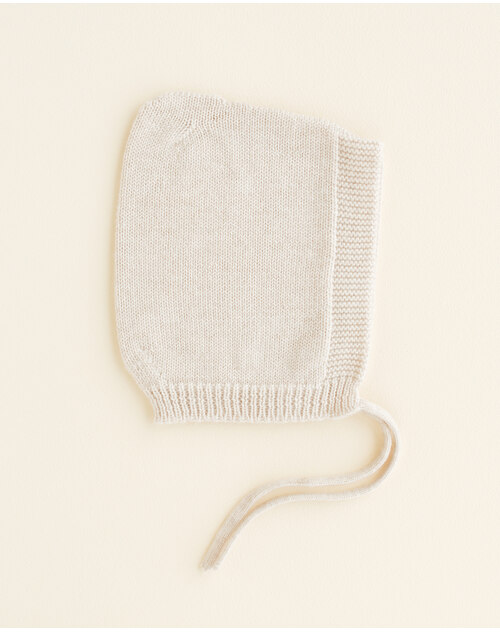 Hvid Baby-Mütze mit Bindebändchen Isidor aus Merinowolle - Cream