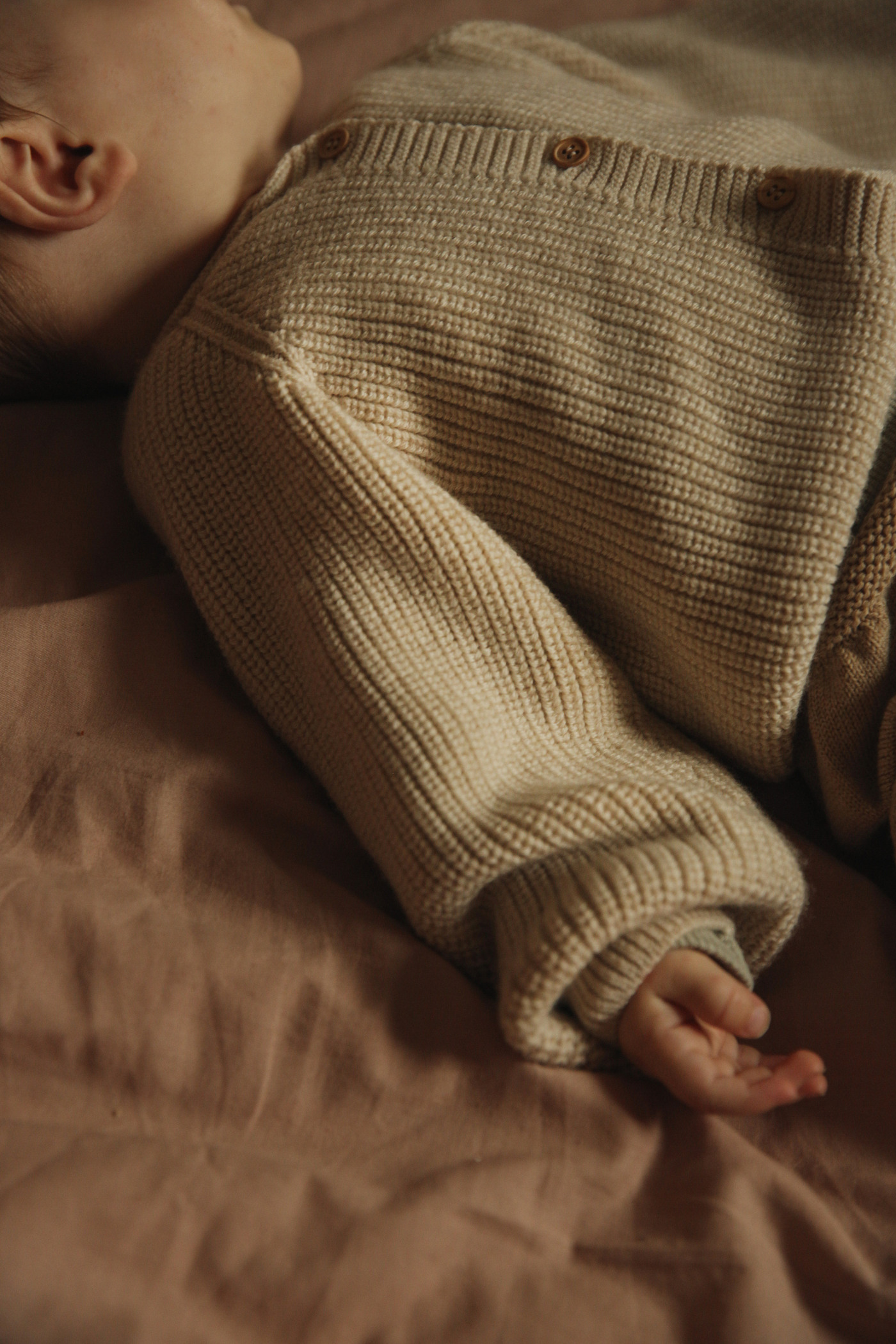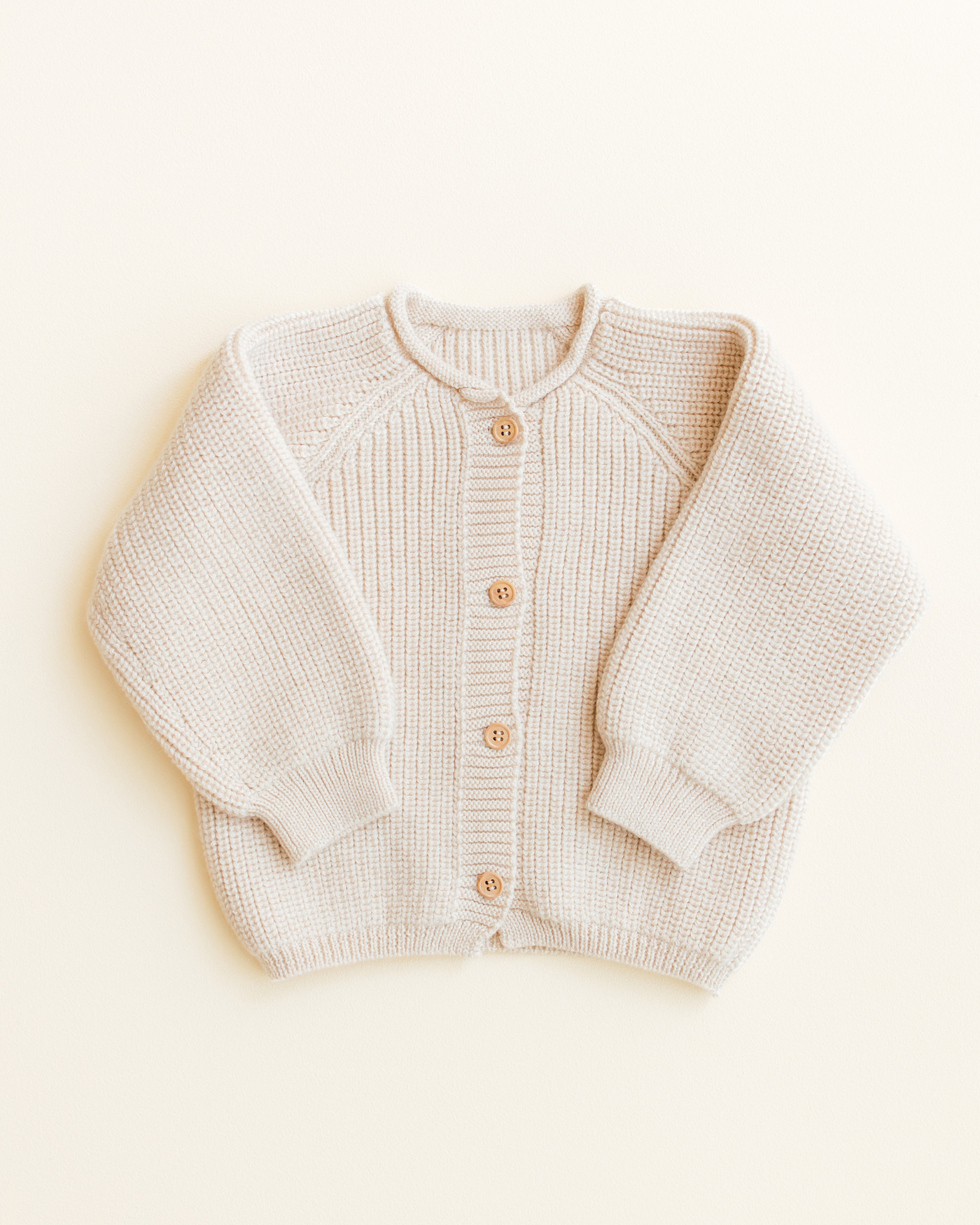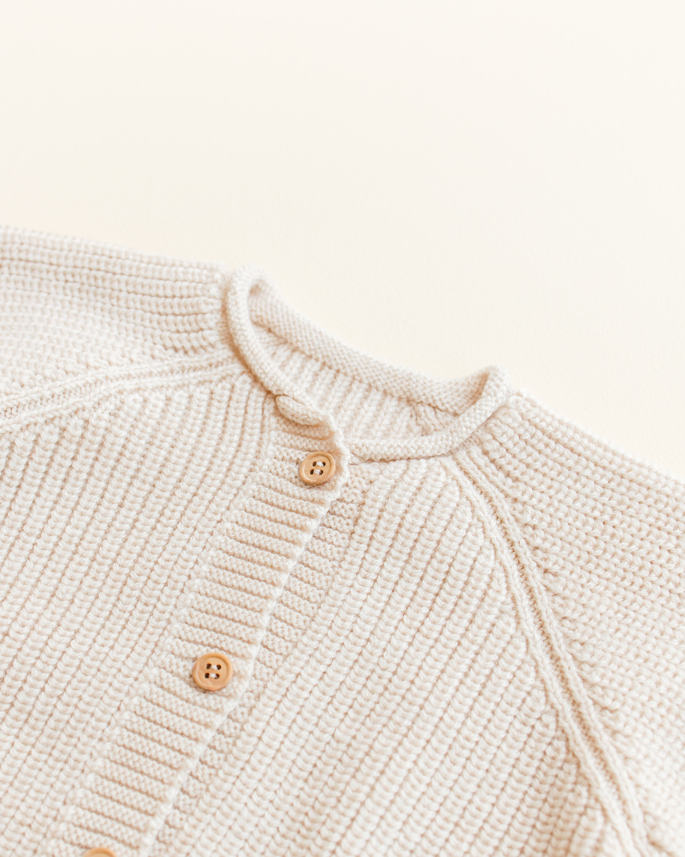 Hvid Baby Strickjacke/Cardigan "Inga" aus Merinowolle - Cream