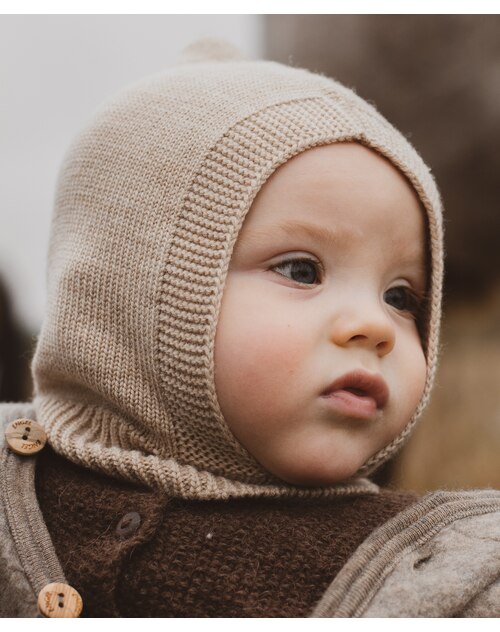 Hvid Balaclava/Schlupfmütze 'Eddy' aus Merinowolle - Sand