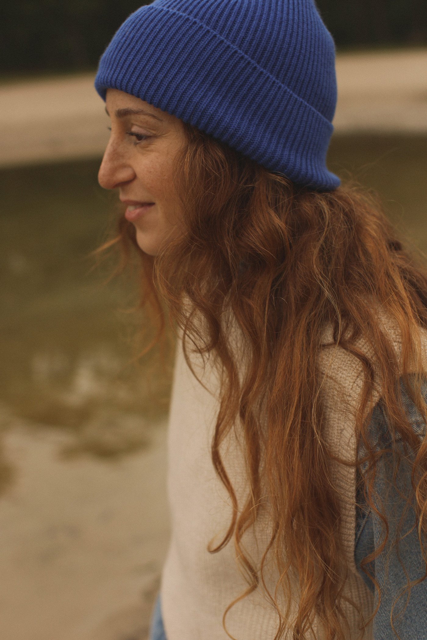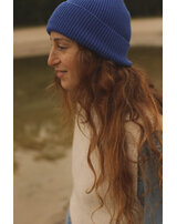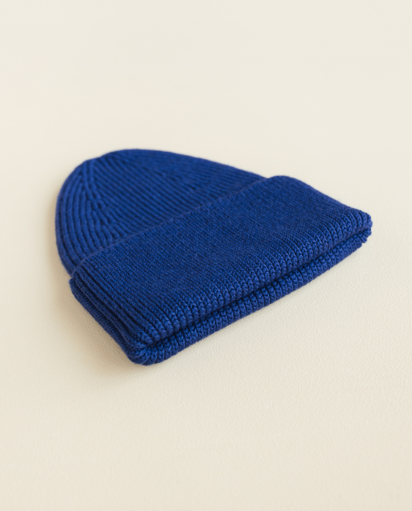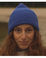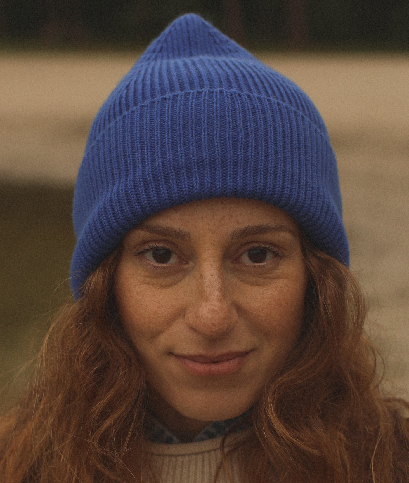 Hvid Damen-Mütze/Beanie Fonzie aus Merinowolle - Cobalt Blue