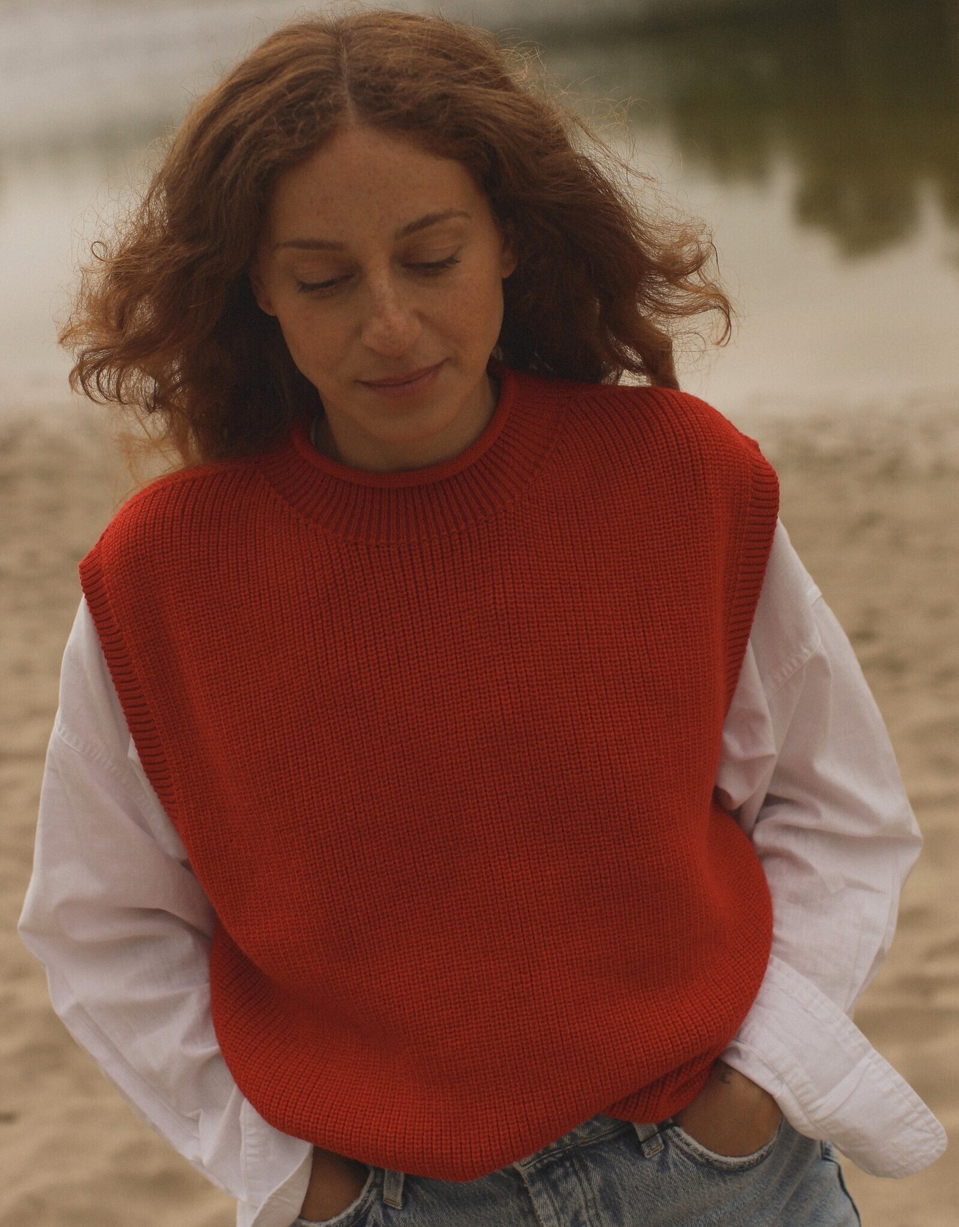 Hvid Damen-Pullunder Helle aus Merinowolle - Red