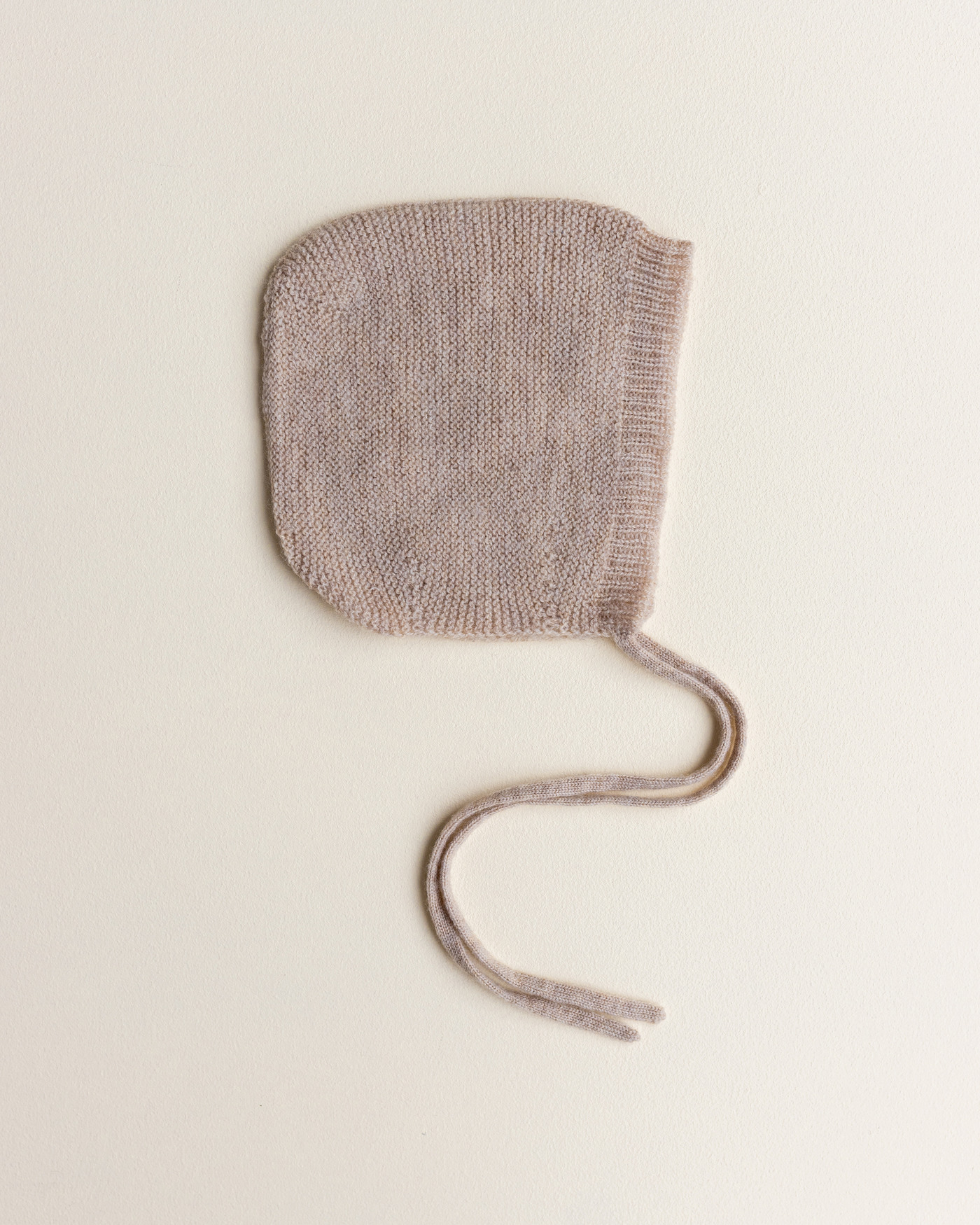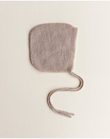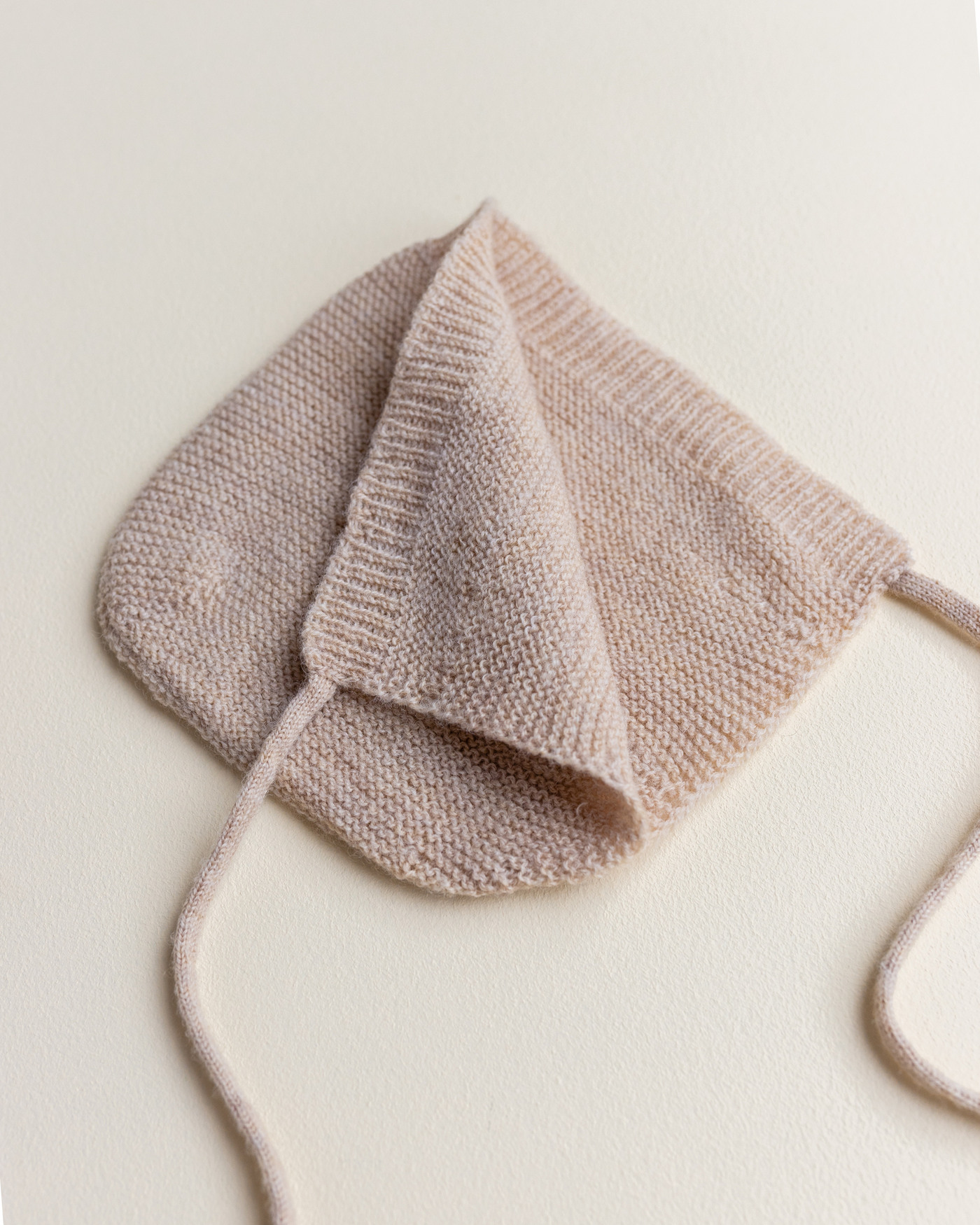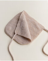 Hvid Neugeborenen-Mütze mit Bindebändchen "Dolly" aus Merinowolle - Sand