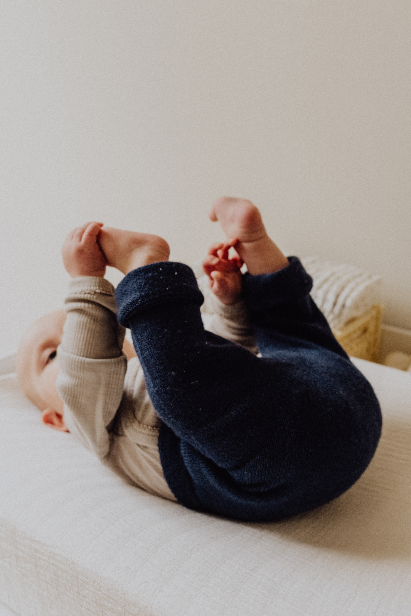So ein tolles Basic für jede Baby-Ausstattung bietet diese superbequeme Strickhose aus italienischer Merinowolle von Hvid Knitwear.