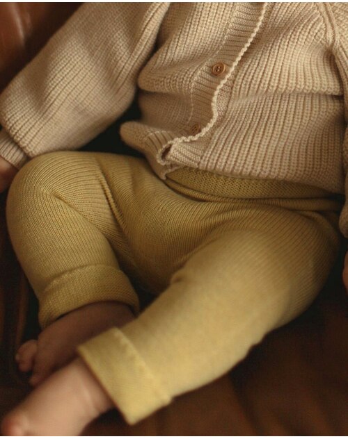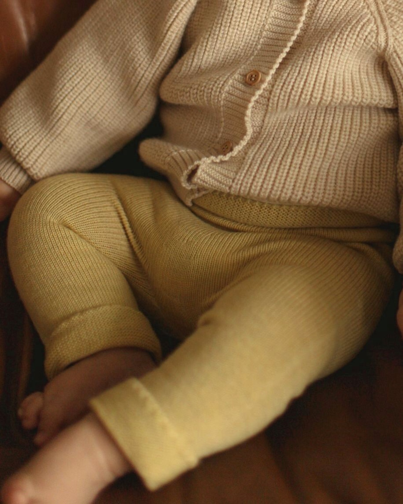Hvid Strickhose Guido aus Merinowolle - Light Yellow