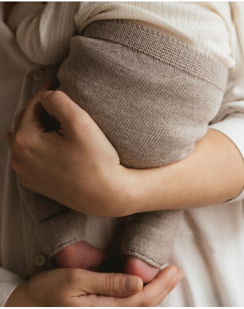 So ein tolles Basic für jede Baby-Ausstattung bietet diese superbequeme Strickhose aus italienischer Merinowolle von Hvid Knitwear.